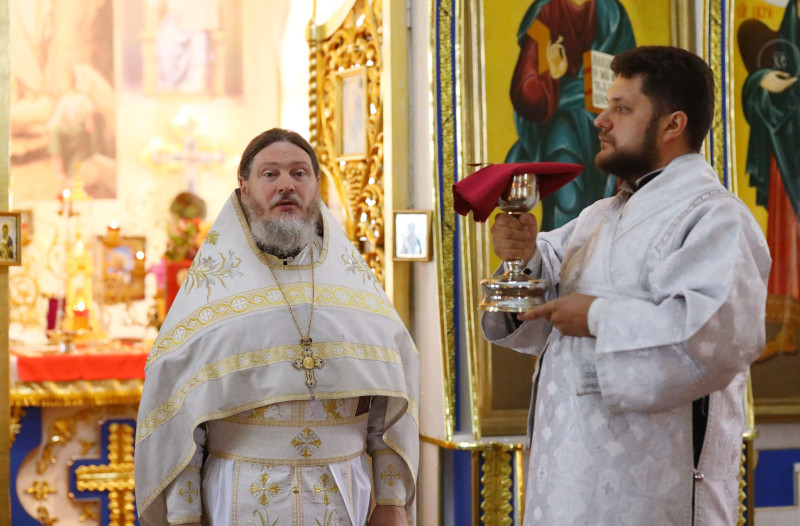 Божественную Литургию в этот день в Свято-Никольском кафедральном соборе города Булаево совершил Высокопреосвященный Владимир, архиепископ Петропавловский и Булаевский. Владыке сослужили прот. Сергий Первушин — секретарь епархиального управления и иер. Сергий Пропустин —благочинный Булаевского церковного округа, настоятель храма. Диаконский чин Владимир Бартоль и Алексей Александрович. Песнопения литургии исполнил хор кафедрального собора Петропавловска под управлением регента Затай А. А.