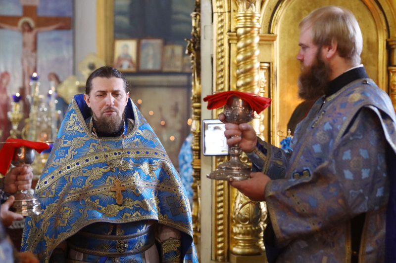 На Литургии было прочитано Евангельское зачало 54 от Луки: В продолжение пути их пришел Он в одно селение; здесь женщина, именем Марфа, приняла Его в дом свой; у неё была сестра, именем Мария, которая села у ног Иисуса и слушала слово Его.