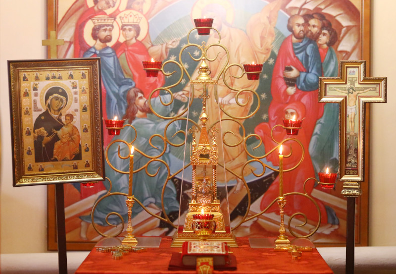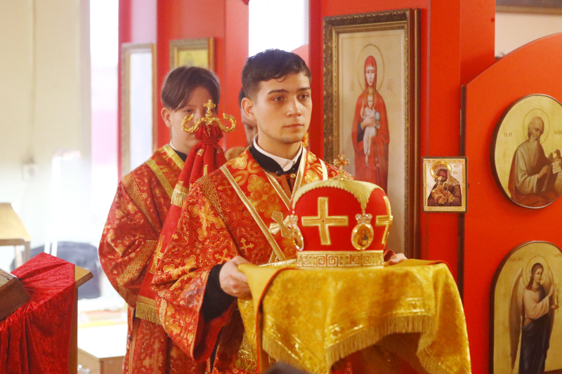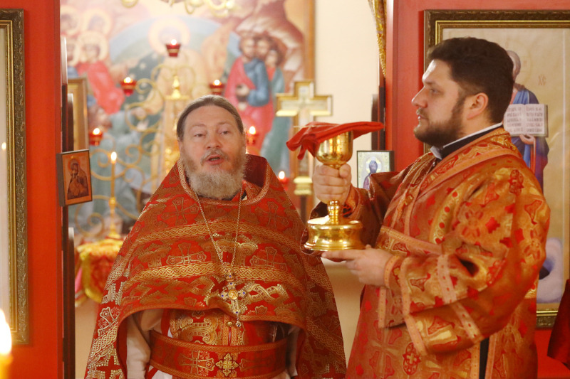 На литургии было прочитано Евангельское Зачало 52 от Иоанна: Это и заповедую вам: да любите друг друга. Если мир вас ненавидит, знайте, что Меня он прежде вас возненавидел. Если бы вы от мира были, мир любил бы свое. А так как вы не от мира, но Я избрал вас от мира, поэтому ненавидит вас мир. Помните слово, которое Я сказал вам: раб не больше господина своего. Если Меня гнали, и вас будут гнать; если слово Мое соблюли, и ваше будут соблюдать. Но это всё будут делать вам за имя Мое, потому что не знают Пославшего Меня. Если бы Я не пришел и не говорил им, они не имели бы греха; теперь же извинения не имеют в грехе своем. Ненавидящий Меня и Отца Моего ненавидит. Если бы Я не сотворил между ними дел, каких никто другой не сотворил, они не имели бы греха; теперь же и видели и возненавидели и Меня и Отца Моего. Но да исполнится слово, в Законе их написанное: «Возненавидели Меня напрасно». Когда придет Утешитель, Которого Я пошлю вам от Отца, Дух Истины, Который от Отца исходит, Он будет свидетельствовать о Мне. Но и вы свидетельствуйте, потому что от начала вы со Мною. Это Я сказал вам, чтобы вас не ввели в соблазн. Будут отлучать вас от синагог; но приходит час, когда всякий, кто убьет вас, будет думать, что он приносит службу Богу. (Ин. 15:17-16:2)