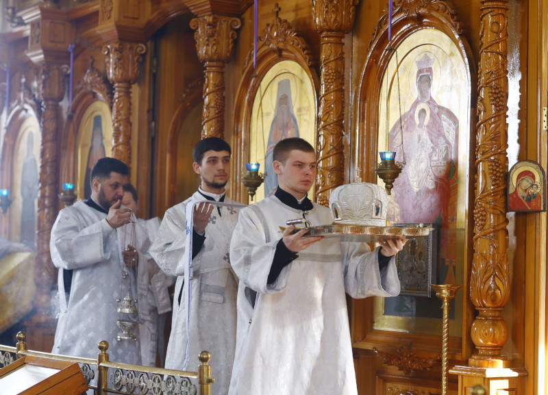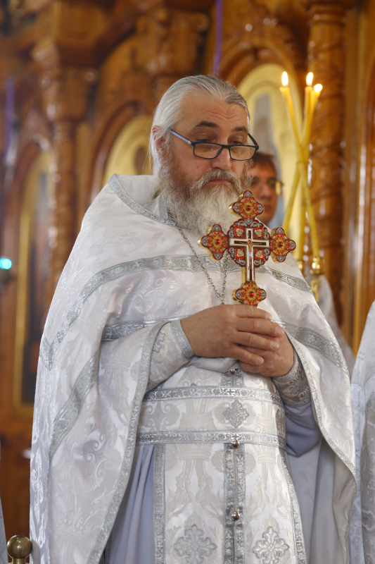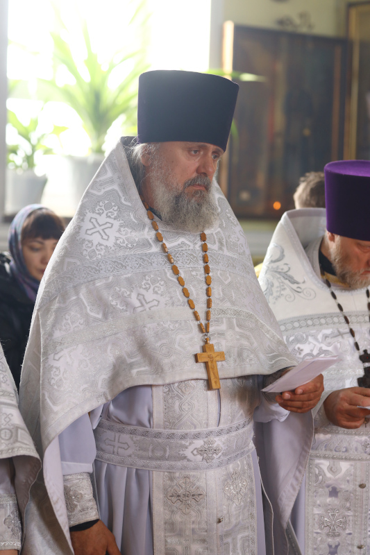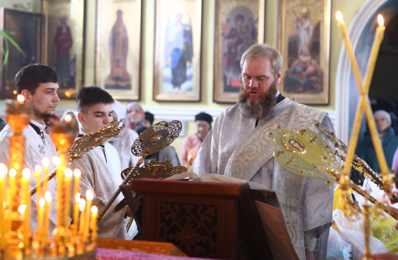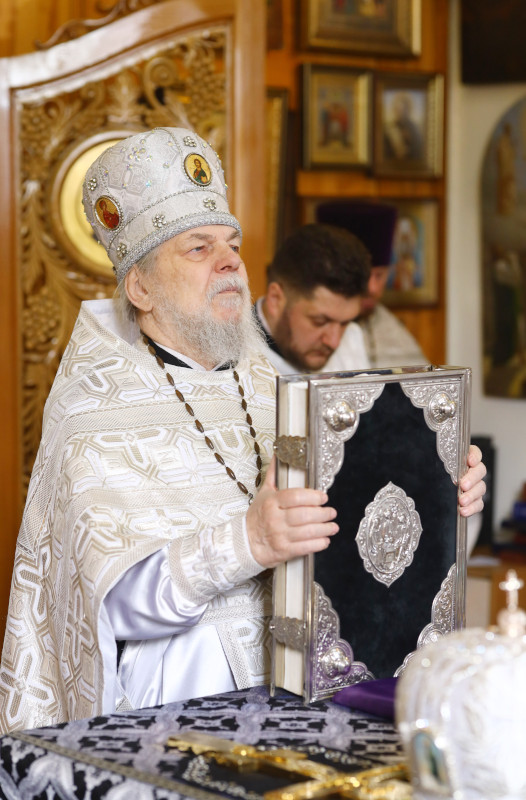 На Литургии было прочитано заупокойное Евангельское Зачало 22 от Иоанна: Рече Господь ко пришедшым к Нему иудеем: се есть воля Пославшаго Мя, да всяк видяй Сына и веруяй в Него имать живот вечный, и воскрешу его Аз в последний день. Роптаху убо Иудее о Нем, яко рече: Аз есмь хлеб сшедый с небесе. И глаголаху: не Сей ли есть Иисус сын Иосифов, Егоже мы знаем отца и Матерь? Како убо глаголет Сей, яко с небесе снидох? Отвеща убо Иисус и рече им: не ропщите между собою, никтоже может приити ко Мне, аще не Отец пославый Мя привлечет его, и Аз воскрешу его в последний день. (Ин 6:40–44)