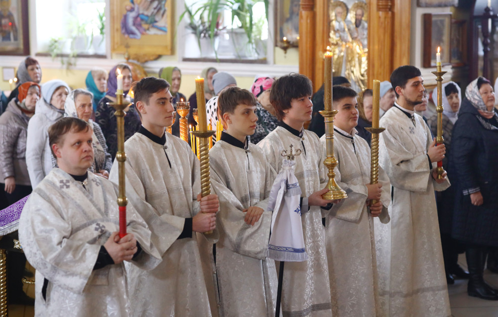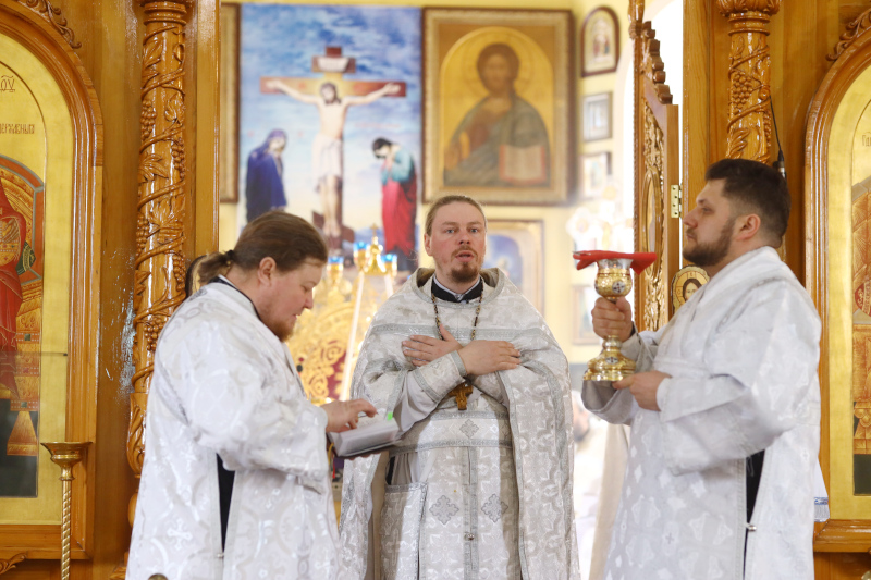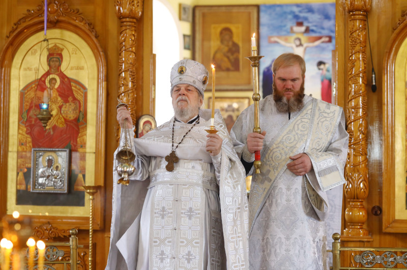 Божественную Литургию по чину святителя Иоанна Златоустого в этот день в кафедральном соборе Петропавловска совершил Высокопреосвященный Владимир, архиепископ Петропавловский и Булаевский. Владыке сослужили клирики епархии, принимающие участие в Свято-Мефодиевских образовательных чтениях. Песнопения Литургии исполнил хор Кафедрального собора под управлением регента Затай А. А.