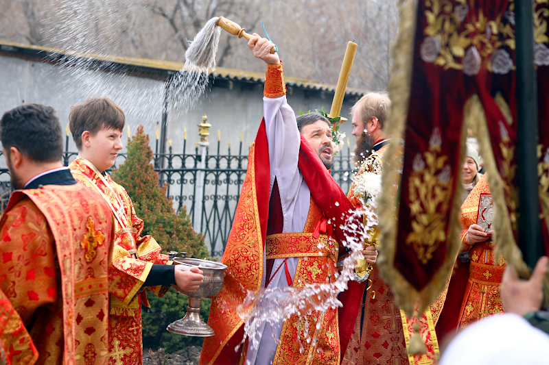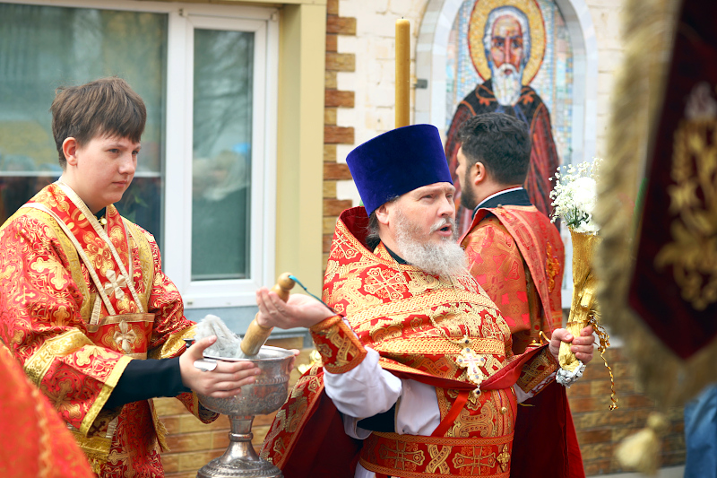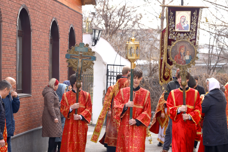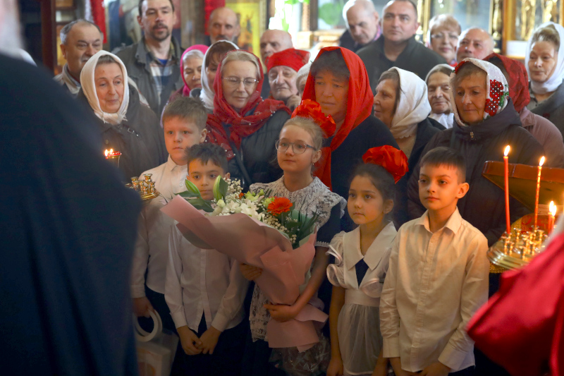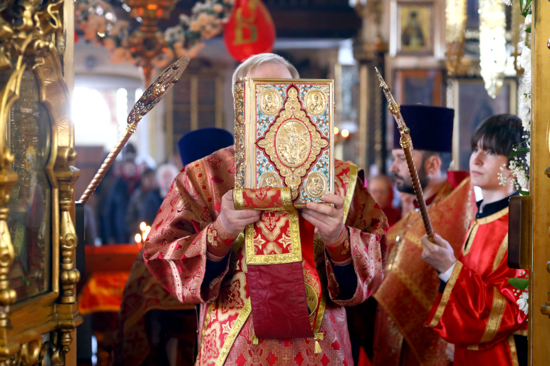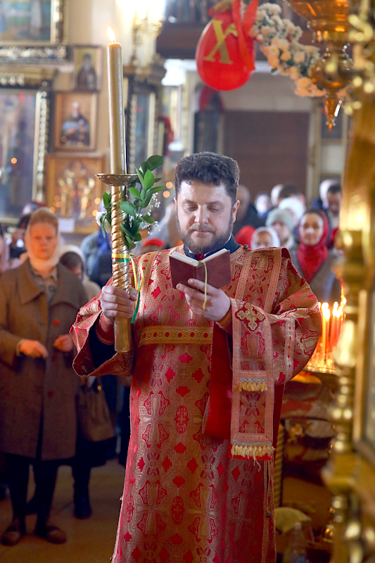 Литургия совершалась по Уставу первого дня праздника Пасхи. Были пропеты Пасхальные антифоны: