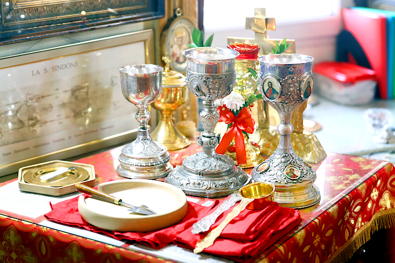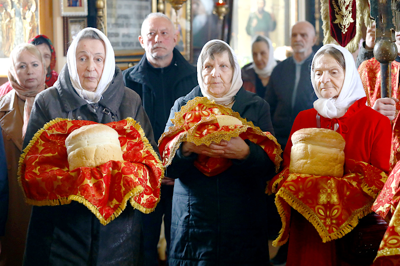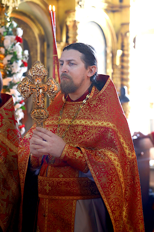 На Литургии было прочитано Евангельское Зачало 113 от Луки: Петр, встав, побежал ко гробу и, наклонившись, увидел только пелены лежащие, и пошел назад, дивясь сам в себе происшедшему. В тот же день двое из них шли в селение, отстоящее стадий на шестьдесят от Иерусалима, называемое Эммаус; и разговаривали между собою о всех сих событиях. И когда они разговаривали и рассуждали между собою, и Сам Иисус, приблизившись, пошел с ними. Но глаза их были удержаны, так что они не узнали Его. Он же сказал им: о чем это вы, идя, рассуждаете между собою, и отчего вы печальны? Один из них, именем Клеопа, сказал Ему в ответ: неужели Ты один из пришедших в Иерусалим не знаешь о происшедшем в нем в эти дни? И сказал им: о чем? Они сказали Ему: что было с Иисусом Назарянином, Который был пророк, сильный в деле и слове пред Богом и всем народом; как предали Его первосвященники и начальники наши для осуждения на смерть и распяли Его. А мы надеялись было, что Он есть Тот, Который должен избавить Израиля; но со всем тем, уже третий день ныне, как это произошло. Но и некоторые женщины из наших изумили нас: они были рано у гроба и не нашли тела Его и, придя, сказывали, что они видели и явление Ангелов, которые говорят, что Он жив. И пошли некоторые из наших ко гробу и нашли так, как и женщины говорили, но Его не видели. Тогда Он сказал им: о, несмысленные и медлительные сердцем, чтобы веровать всему, что предсказывали пророки! Не так ли надлежало пострадать Христу и войти в славу Свою? И, начав от Моисея, из всех пророков изъяснял им сказанное о Нем во всем Писании. И приблизились они к тому селению, в которое шли; и Он показывал им вид, что хочет идти далее. Но они удерживали Его, говоря: останься с нами, потому что день уже склонился к вечеру. И Он вошел и остался с ними. И когда Он возлежал с ними, то, взяв хлеб, благословил, преломил и подал им. Тогда открылись у них глаза, и они узнали Его. Но Он стал невидим для них. И они сказали друг другу: не горело ли в нас сердце наше, когда Он говорил нам на дороге и когда изъяснял нам Писание? И, встав в тот же час, возвратились в Иерусалим и нашли вместе одиннадцать Апостолов и бывших с ними, которые говорили, что Господь истинно воскрес и явился Симону. И они рассказывали о происшедшем на пути, и как Он был узнан ими в преломлении хлеба. (Лк. 24:35-51)