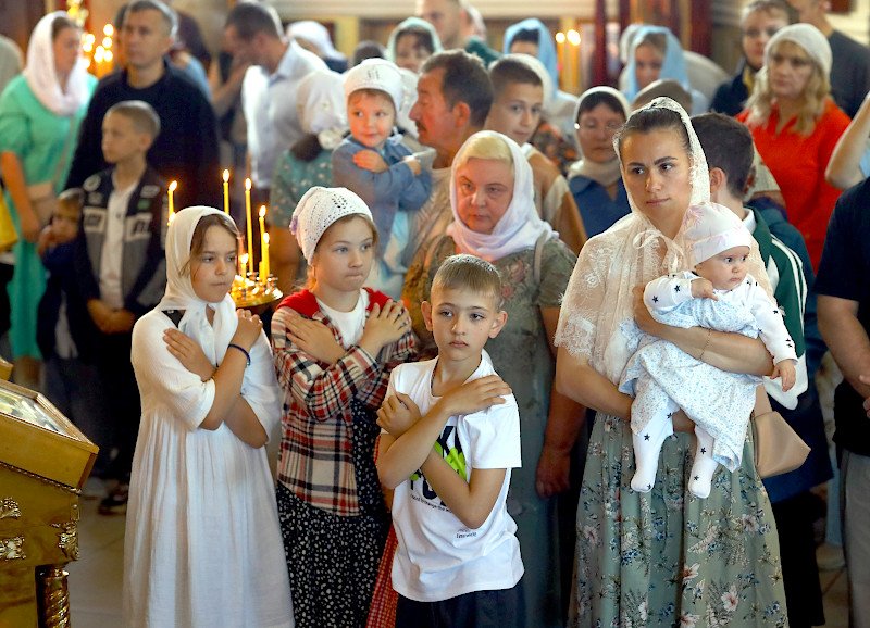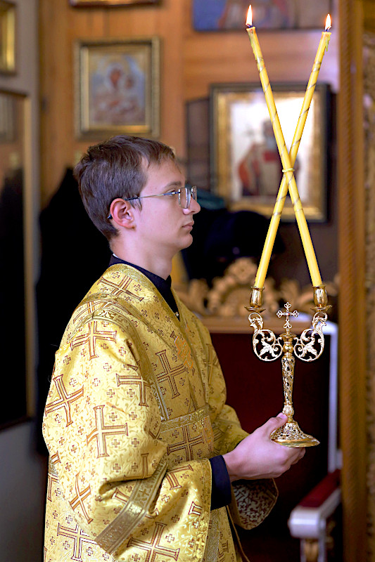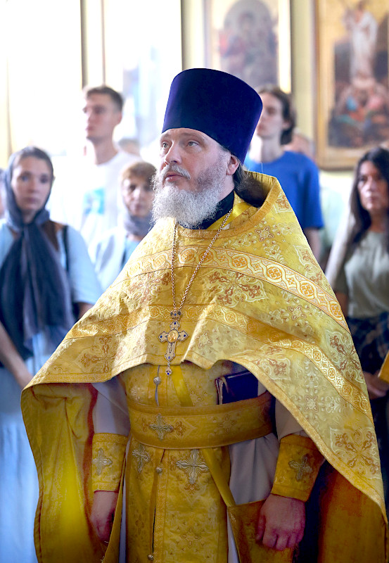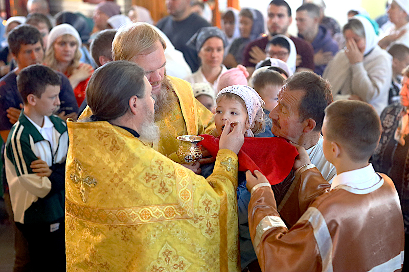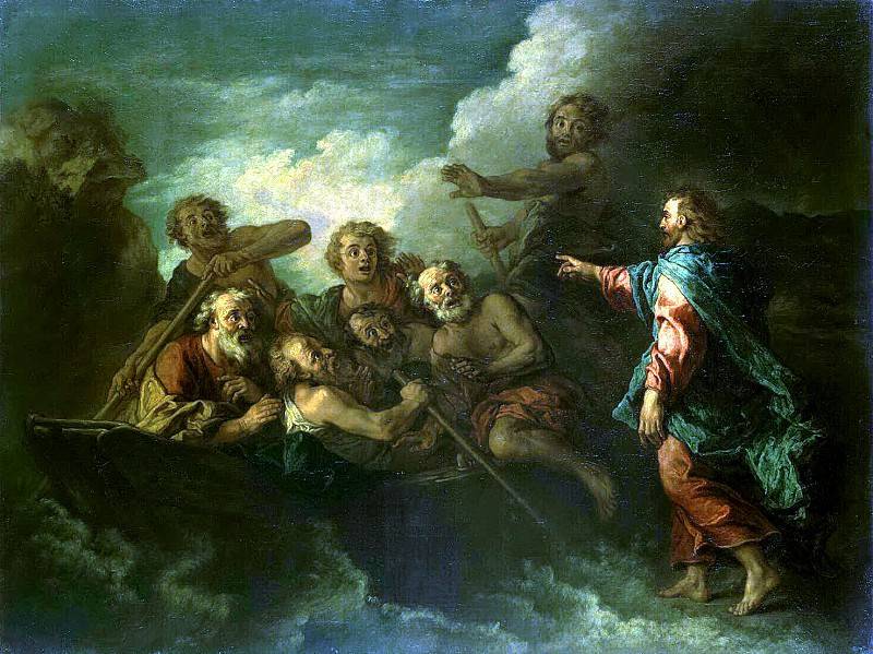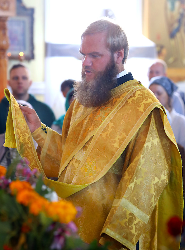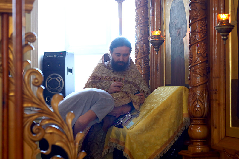 На литургии было прочитано Евангельское повествование от Матфея 59 Зачало: И тотчас понудил Иисус учеников Своих войти в лодку и отправиться прежде Его на другую сторону, пока Он отпустит народ. И, отпустив народ, Он взошел на гору помолиться наедине; и вечером оставался там один. А лодка была уже на средине моря, и ее било волнами, потому что ветер был противный. В четвертую же стражу ночи пошел к ним Иисус, идя по морю. И ученики, увидев Его идущего по морю, встревожились и говорили: это призрак; и от страха вскричали. Но Иисус тотчас заговорил с ними и сказал: ободритесь; это Я, не бойтесь. Петр сказал Ему в ответ: Господи! если это Ты, повели мне придти к Тебе по воде. Он же сказал: иди. И, выйдя из лодки, Петр пошел по воде, чтобы подойти к Иисусу, но, видя сильный ветер, испугался и, начав утопать, закричал: Господи! спаси меня. Иисус тотчас простер руку, поддержал его и говорит ему: маловерный! зачем ты усомнился? И, когда вошли они в лодку, ветер утих. Бывшие же в лодке подошли, поклонились Ему и сказали: истинно Ты Сын Божий. И, переправившись, прибыли в землю Геннисаретскую. (Мф. 14:25-34)