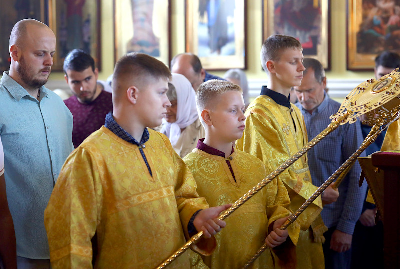 Божественную Литургию в этот день в кафедральном соборе Вознесения Господня совершил Высокопреосвященный Владимир, архиепископ Петропавловский и Булаевский. Владыке сослужили прот. Сергий Первушин — секретарь епархиального управления и иером. Серафим (Максимов) — клирик собора. Диаконский чин Владимир Бартоль. Песнопения литургии исполнил хор собора под управлением регента Затай А. А.