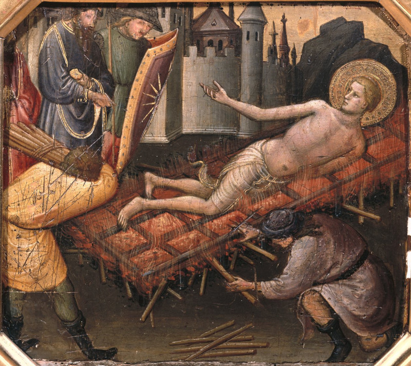 За это архидиакона предали жестоким пыткам, а после отказа принести жертву богам, живьем изжарили на решётке. Мученик умер, произнося хвалебные молитвы ко Господу. Тело святого взял святой Ипполит и перенес в жилище Кириакии. После молитвы христиане похоронили тело архидиакона в катакомбах. Ныне мощи священномученика почивают в римской базилике святого Лаврентия на Тибуртинской дороге — Сан-Лоренцо-фуори-ле-Мура. Этот храм построен над могилой архидиакона.
