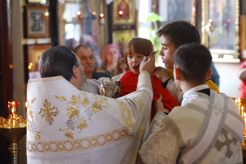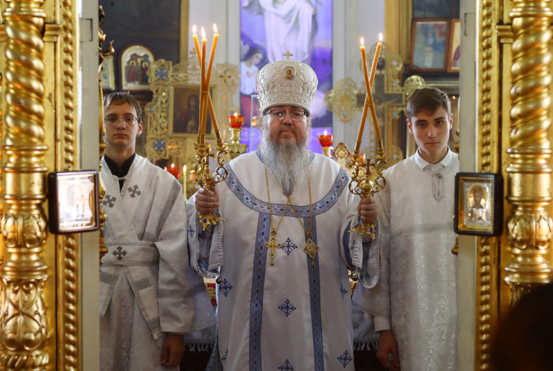 На литургии было прочитано Евангельское зачало 106 от Луки: Прежде же всего того возложат на вас руки и будут гнать вас, предавая в синагоги и в темницы, и поведут пред царей и правителей за имя Мое; будет же это вам для свидетельства.