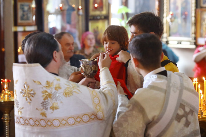 Божественную литургию в этот день в храме Всех Святых города Петропавловска совершил Высокопреосвященный Владимир, архиепископ Петропавловский и Булаевский. Владыке сослужили прот. Сергий Первушин — секретарь епархиального управления, иер. Антоний Шувакин — ключарь храма, прот. Евгений Яшенькин, иер. Павел Олесиюк — клирики храма. Диаконский чин — Алексей Александрович. Песнопения литургии исполнил хор храма под руководством регента Михайловой И. Л.