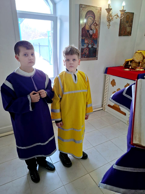 Рядом со взрослыми молились и дети — учащиеся воскресной школы при храме Казанской иконы Божией Матери. Их чистые голоса и искренние молитвы придавали богослужению особую теплоту и трогательность, напоминая о том, что вера живёт и передаётся из поколения в поколение.