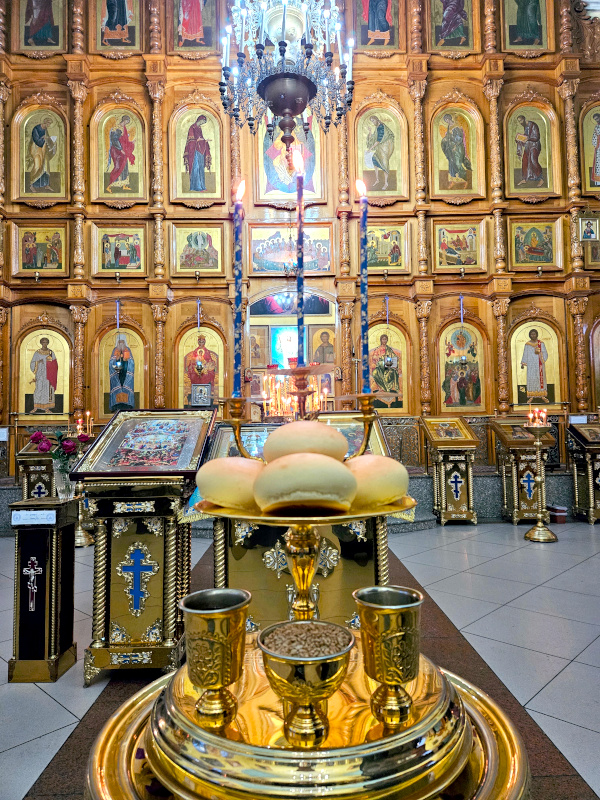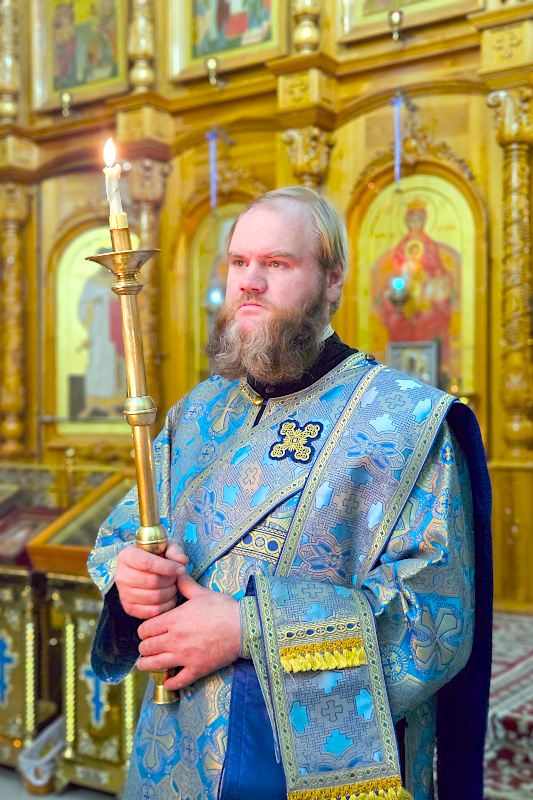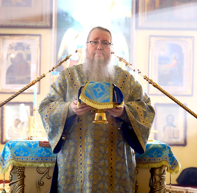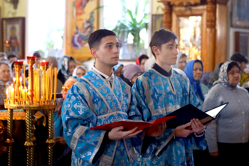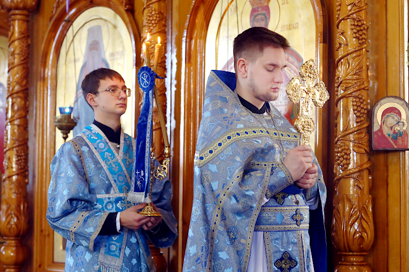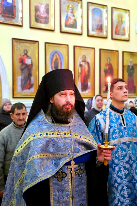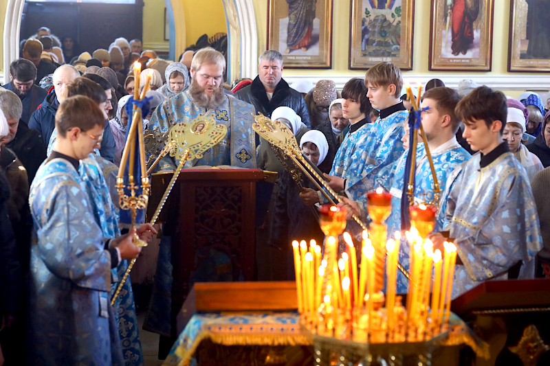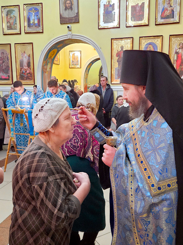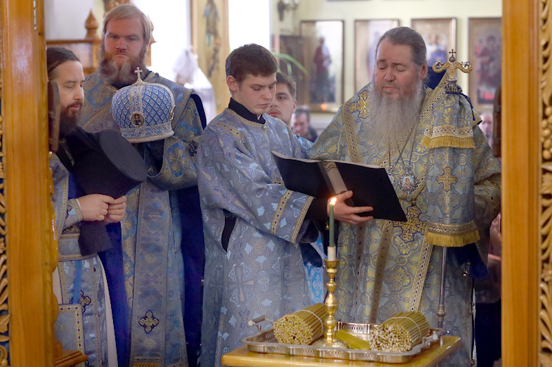 На Литургии было прочитано Евангельское Зачало 7 от Луки: А когда исполнились дни очищения их по закону Моисееву, принесли Его в Иерусалим, чтобы представить пред Господом, как предписано в законе Господнем, чтобы всякий младенец мужского пола, первенец, был посвящен Господу и чтобы принести в жертву, по реченному в законе Господнем, две горлицы или двух птенцов голубиных. Тогда был в Иерусалиме человек по имени Симеон. Он был муж праведный и благочестивый, чающий утешения Израилева; и Дух Святой был на нем. Ему было предсказано Духом Святым, что он не увидит смерти, доколе не увидит Христа Господнего. И пришел он по вдохновению в храм. И когда родители принесли Младенца Иисуса, чтобы совершить над Ним установленное по закону, он взял Его на руки, благословил Бога и сказал: «Ныне отпускаешь раба Твоего, Владыка, по слову Твоему, с миром, ибо видели очи мои спасение Твое, которое Ты уготовал пред лицом всех народов, свет к просвещению язычников и славу народа Твоего Израиля». Иосиф же и мать Его дивились сказанному о Нем. И благословил их Симеон, и сказал Марии, матери Его: «Вот лежит Сей на падение и на восстание многих в Израиле и в предмет пререканий, — и тебе самой оружие пройдет душу, — да откроются помышления многих сердец». Тут была также Анна, пророчица, дочь Фануила, из колена Асирова, достигшая глубокой старости, прожив с мужем от девства своего семь лет, вдова лет восьмидесяти четырех, которая не отходила от храма, постом и молитвой служа Богу день и ночь. И она в то время, подойдя, славила Господа и говорила о Нем всем, ожидавшим избавления в Иерусалиме. И когда они совершили всё по закону Господнему, возвратились в Галилею, в город свой Назарет. Младенец же возрастал и укреплялся духом, исполняясь премудрости, и благодать Божия была на Нем. (Лк. 2:22-40)