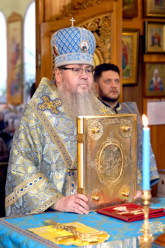 По прочтении Евангельского отрывка на сугубой ектении были произнесены прошения о помощи Божией в умирении церковных нестроений. По сугубой ектении были прочитаны молитвы «О ниспослании мира земле Украинской и на Святой Земле» и «О даровании пастырей Церкви Петропавловской». В завершении Литургии духовенство совершило славление празднику.