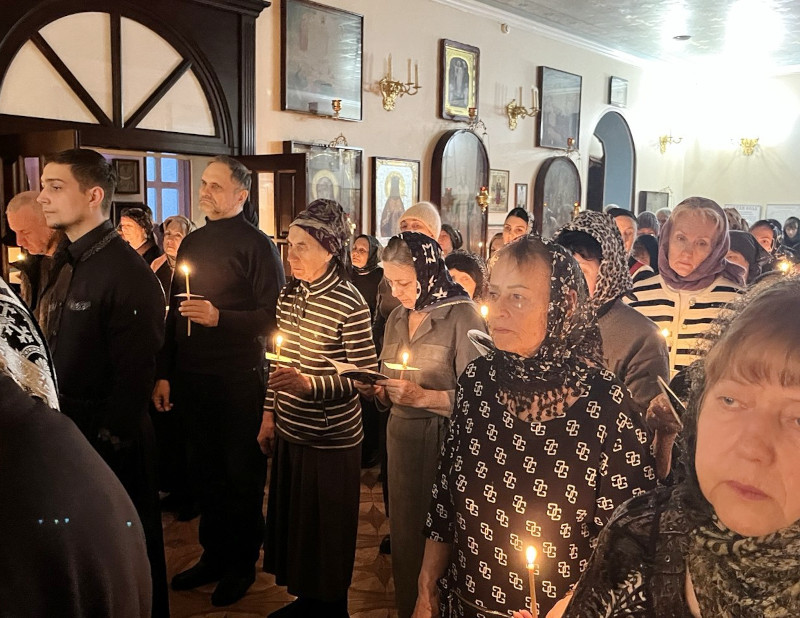 26 февраля в четверг Первой седмицы Великого Поста в храмах Православной Церкви была прочитана последняя часть Великого канона прп. Андрея Критского. Высокопреосвященный Владимир, архиепископ Петропавловский и Булаевский совершил чтение канона в храме сщмч. Мефодия, епископа Петропавловского. С владыкой канон прочли прот. Сергий Первушин — секретарь епархиального управления, иер. Михаил Березин — настоятель храма, иер. Алексей Щербенко и иер. Георгий Петров — клирики храма. Песнопения канона исполнил хор храма.