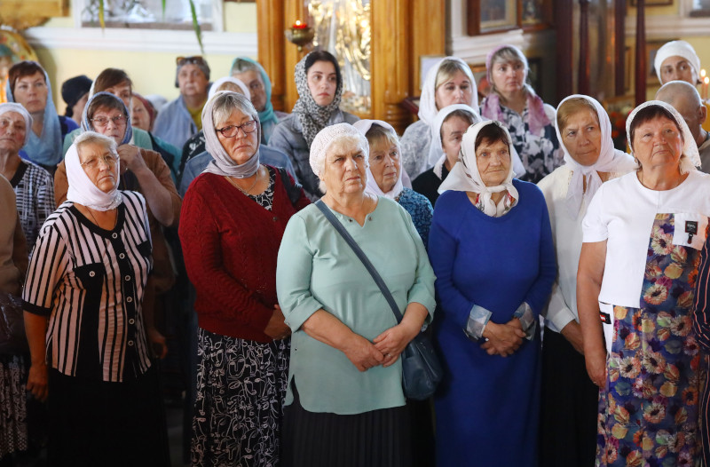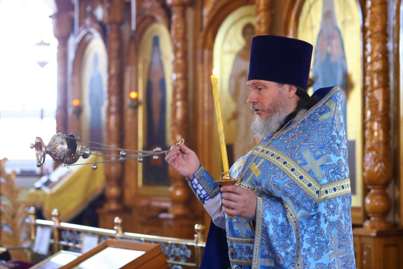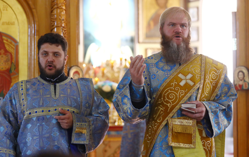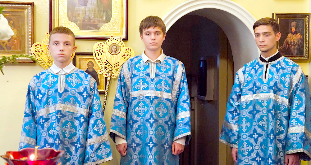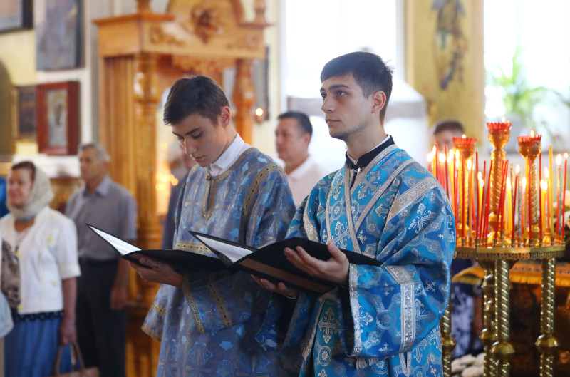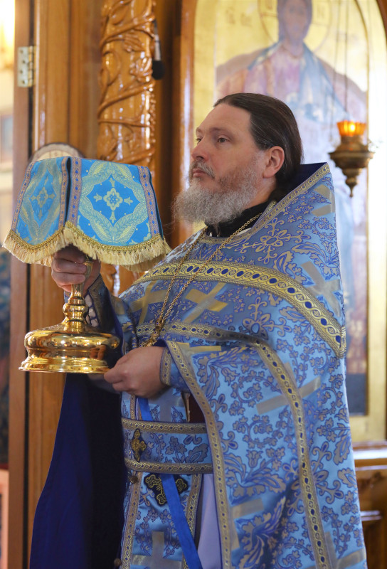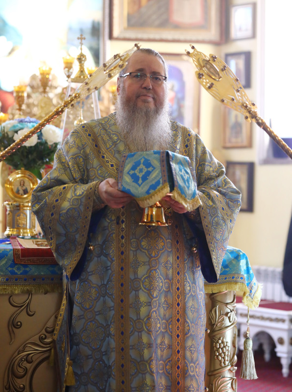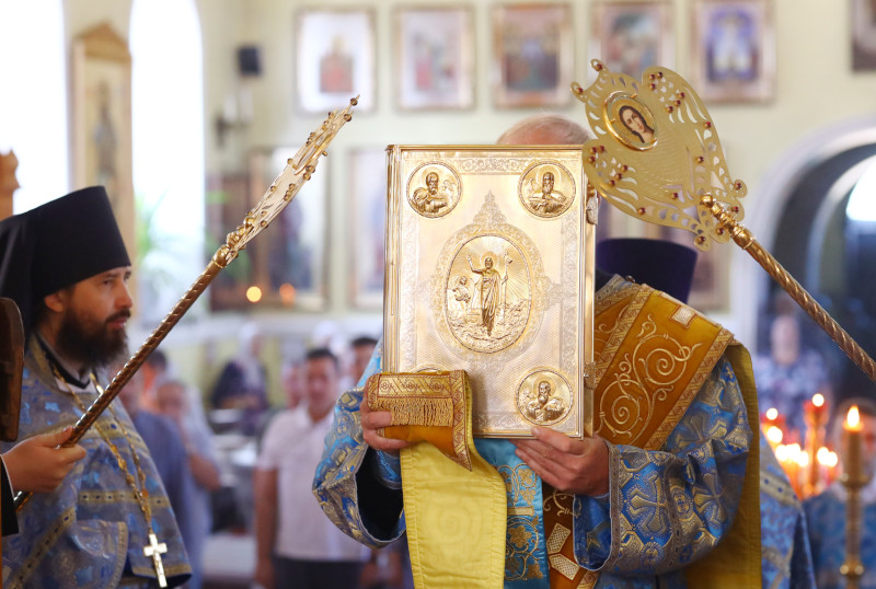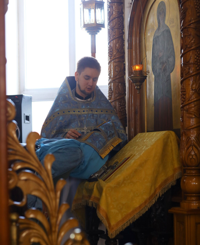 На литургии было прочитано Евангельское зачало 54 от Луки: В продолжение пути их пришел Он в одно селение; здесь женщина, именем Марфа, приняла Его в дом свой; у неё была сестра, именем Мария, которая села у ног Иисуса и слушала слово Его. Марфа же заботилась о большом угощении и, подойдя, сказала: Господи! или Тебе нужды нет, что сестра моя одну меня оставила служить? скажи ей, чтобы помогла мне. Иисус же сказал ей в ответ: Марфа! Марфа! ты заботишься и суетишься о многом, а одно только нужно; Мария же избрала благую часть, которая не отнимется у неё. (Лк. 10:38-42,11:27-28)