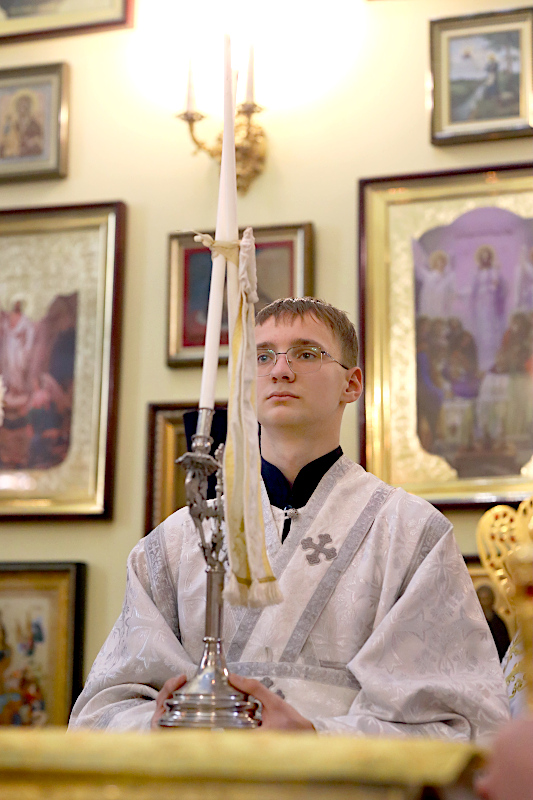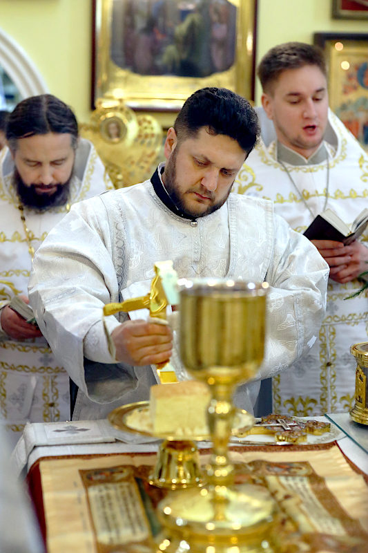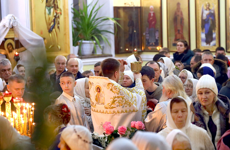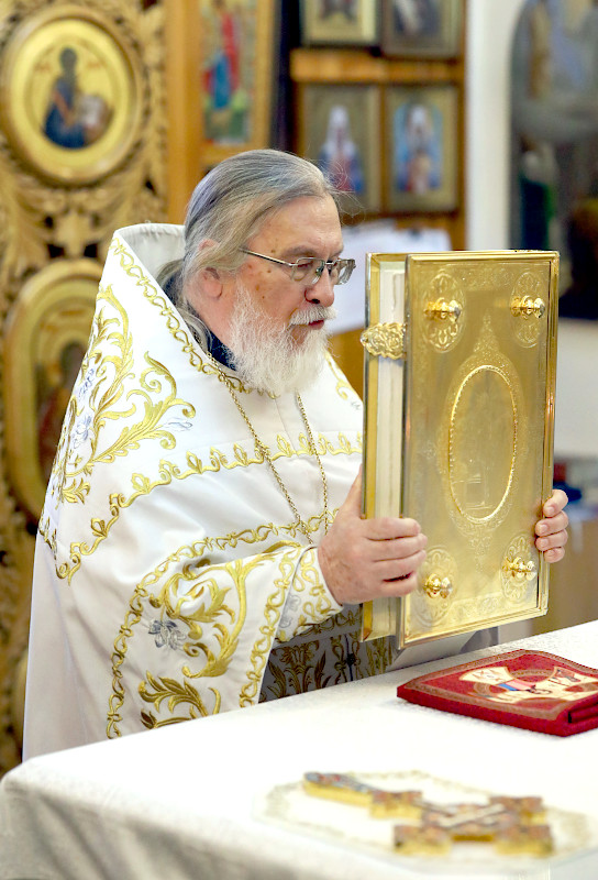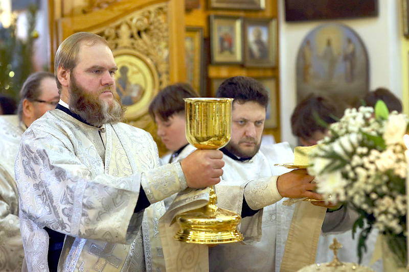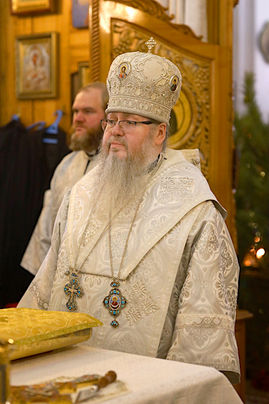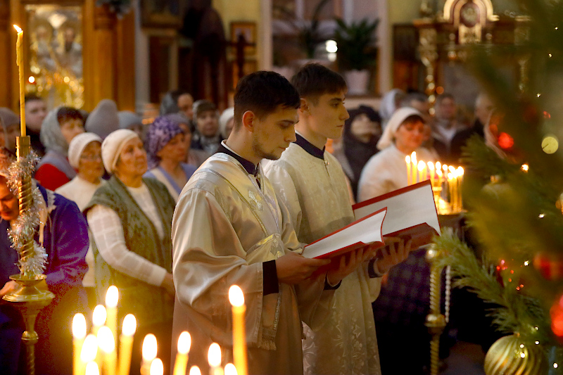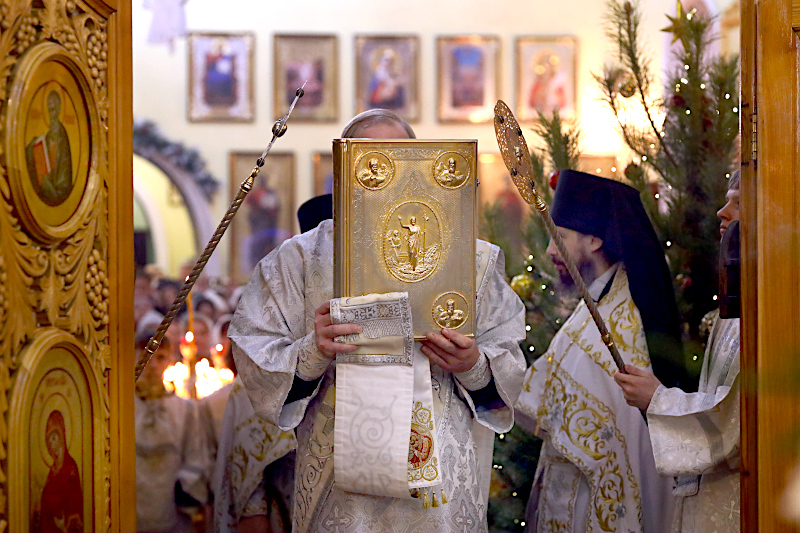 На Литургии было прочитано Евангельское Зачало от Матфея: Когда же Иисус родился в Вифлееме Иудейском во дни Ирода царя, вот, волхвы с востока прибыли в Иерусалим и сказали: где родившийся Царь Иудейский? Ибо мы видели восход Его звезды и пришли поклониться Ему. Услышав это, царь Ирод смутился, и весь Иерусалим с ним. И собрав всех первосвященников и книжников народных, спрашивал у них: где родится Христос? Они же сказали ему: в Вифлееме Иудейском, ибо так написано чрез пророка: «И ты, Вифлеем, земля Иудина, ничем не меньше правителей Иудиных; ибо из тебя выйдет Вождь, Который будет пасти народ Мой, Израиля».