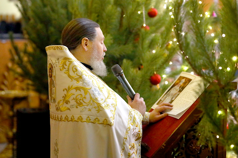 По запричастном стихе прот. Сергий Первушин огласил Рождественское послание Святейшего Патриарха Московского и всея Руси Кирилла.