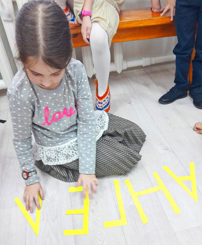 После этого дети с радостью поучаствовали в дидактической игре «Напиши слово», пробуя складывать слова из букв. На урок к младшим школьникам пришли ученики старших классов. Они познакомили ребят с содержанием книг «Евангелие для детей» и «Православная книга», рассказали о том, какие добрые и мудрые истории можно найти на их страницах.