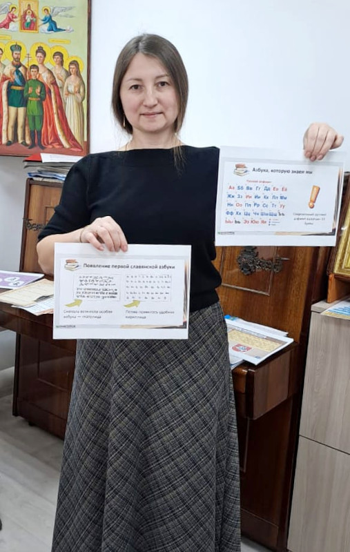 Не менее содержательно прошли занятия и в старших классах. Ребята также познакомились с выставкой православных книг, рассматривали издания на церковнославянском языке, сравнивали старинные и современные азбуки. На уроке говорили о первых русских печатниках — Иване Фёдорове и Пётре Мстиславце, читали тексты церковнославянской литературы, стараясь почувствовать красоту и глубину древнего языка.