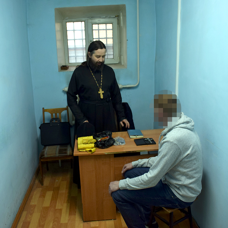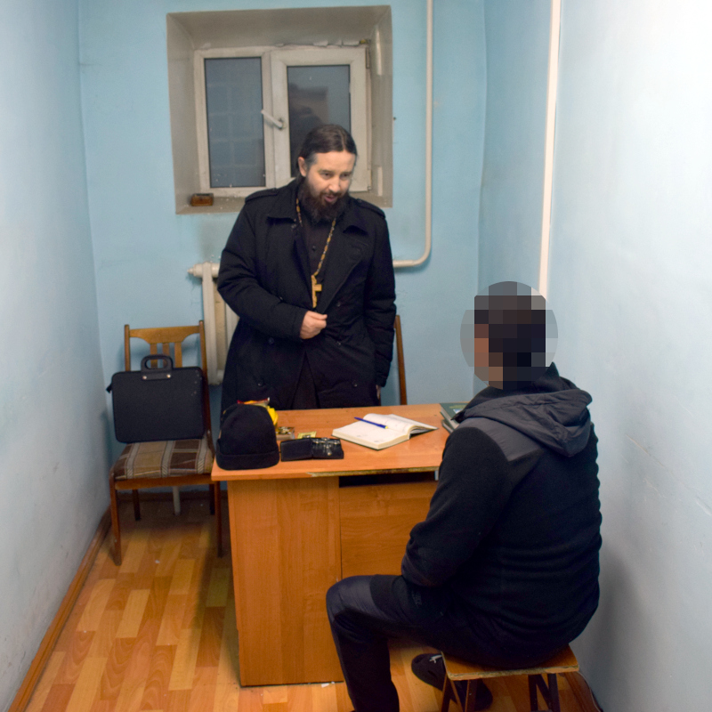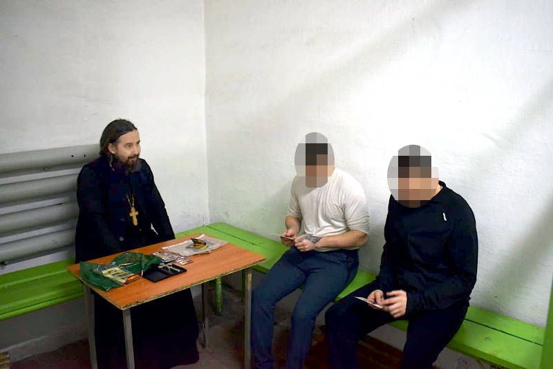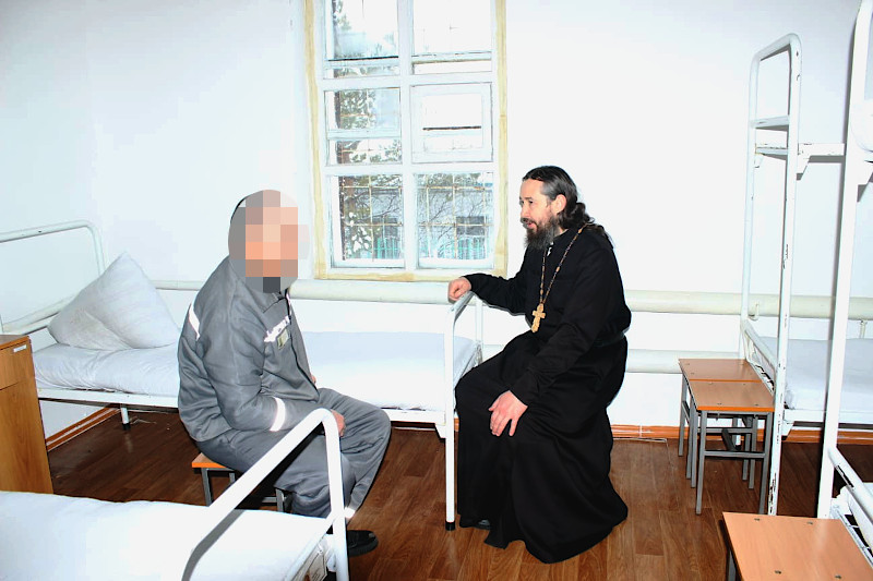 По завершении поучения священник совершил Таинство исповеди, провел индивидуальные и общие встречи с осужденными. Для личного пользования заключенным были переданы: нательные крестики и ладанки, карманные иконки, пояса с молитвой «Живый в помощи Вышняго», четки для совершения молитвы, освященный елей, различные благовония, свечи и святая вода.