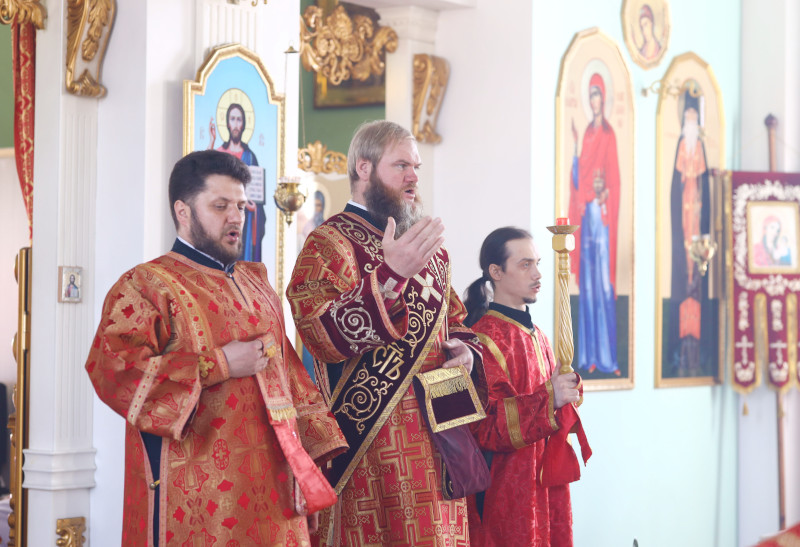 Божественную Литургию в этот день в Кафедральном соборе Вознесения Господня совершил Высокопреосвященный Владимир, архиепископ Петропавловский и Булаевский. Владыке сослужили прот. Сергий Первушин — секретарь епархиального управления, иер. Михаил Березин — настоятель храма. Диаконский чин: Владимир Бартоль, Алексей Александрович и иерод. Михаил (Кузнецов). Песнопения Литургии исполнили хор под управлением регента Затай А. А.