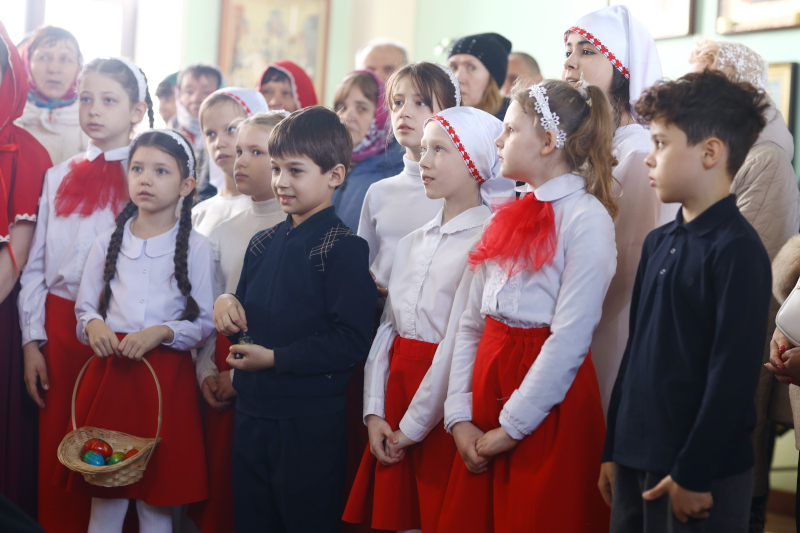 Литургия совершилась по уставу первого дня Пасхи. Были пропеты антифоны праздника Пасхи.
