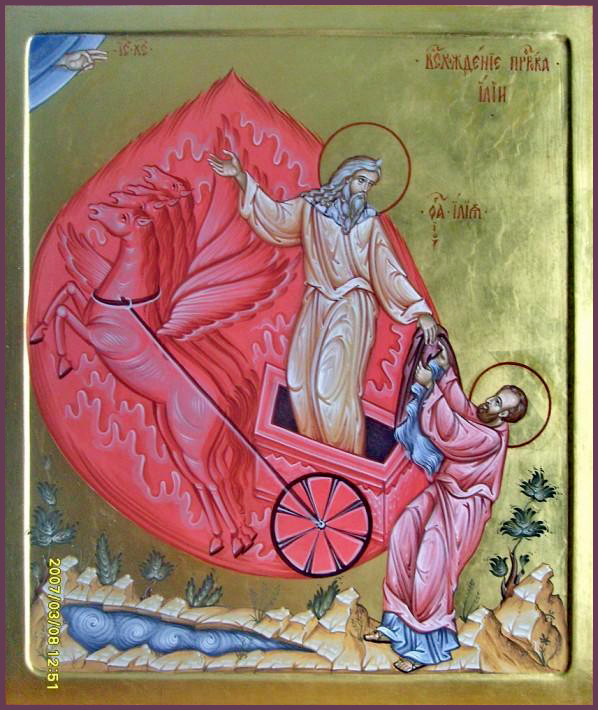 Пророк Илия, величайший святой и первый девственник Ветхого Завета, родился за 900 лет до Р.Х. в Фесвии Галаадской. С юности подвизался в пустыне в посте и молитве. В царствование идолопоклонника Ахава обличил поклонение Ваалу, предсказав трехлетний голод. По его молитве сошёл небесный огонь, испепеливший жертву на пропитанном водой жертвеннике. За ревность о Боге был взят на небо живым в огненной колеснице. Явился вместе с Моисеем при Преображении Господнем. По преданию, станет Предтечей Второго Пришествия Христа на землю и во время проповеди примет телесную смерть.