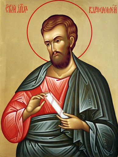 7 сентября, Неделя 13-я по Пятидесятнице, день памяти святого апостола Варфоломея. Святой апостол Варфоломей родом из Каны Галилейской, из числа 12-ти апостолов Христовых. После Сошествия Святого Духа в день Пятидесятницы ему и апостолу Филиппу выпал жребий проповеди Евангелия в Сирии и Малой Азии. Благовествуя, они то расходились по разным городам, то сходились вновь. Святому апостолу Филиппу сопутствовала сестра, дева Мариамна. Проходя города Сирии и Мизии, они перенесли много скорбей и напастей, их побивали камнями, заключали в темницы. В одном из селений они встретились с апостолом Иоанном Богословом и вместе отправились во Фригию. В городе Иераполе силой своих молитв они уничтожили громадную ехидну, которой язычники покланялись как божеству. Святые апостолы Варфоломей и Филипп с сестрой свою проповедь подтверждали многими знамениями.
