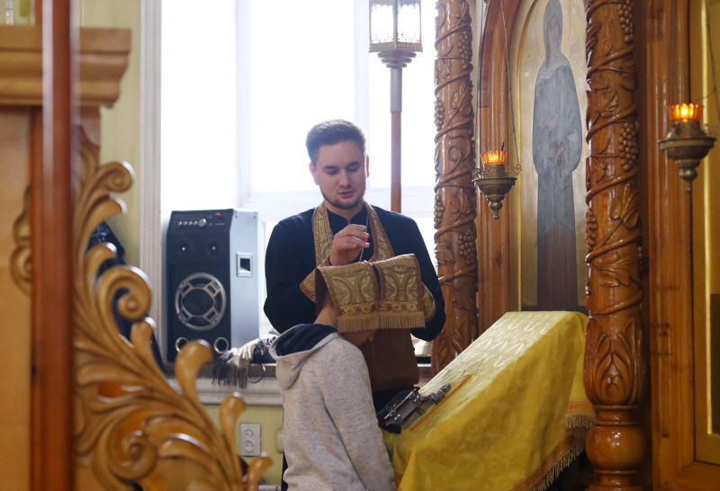 На Литургии было прочитано Евангельское Зачало 17 от Луки: Однажды, когда народ теснился к Нему, чтобы слышать слово Божие, а Он стоял у озера Геннисаретского, увидел Он две лодки, стоящие на озере; а рыболовы, выйдя из них, вымывали сети. Войдя в одну лодку, которая была Симонова, Он просил его отплыть несколько от берега и, сев, учил народ из лодки. Когда же перестал учить, сказал Симону: отплыви на глубину и закиньте сети свои для лова. Симон сказал Ему в ответ: Наставник! мы трудились всю ночь и ничего не поймали, но по слову Твоему закину сеть. Сделав это, они поймали великое множество рыбы, и даже сеть у них прорывалась. И дали знак товарищам, находившимся на другой лодке, чтобы пришли помочь им; и пришли, и наполнили обе лодки, так что они начинали тонуть. Увидев это, Симон Петр припал к коленям Иисуса и сказал: выйди от меня, Господи! потому что я человек грешный. Ибо ужас объял его и всех, бывших с ним, от этого лова рыб, ими пойманных; также и Иакова и Иоанна, сыновей Зеведеевых, бывших товарищами Симону. И сказал Симону Иисус: не бойся; отныне будешь ловить человеков. И, вытащив обе лодки на берег, оставили всё и последовали за Ним. (Лк. 5:1-11)