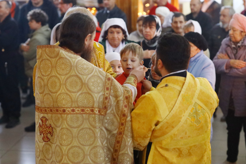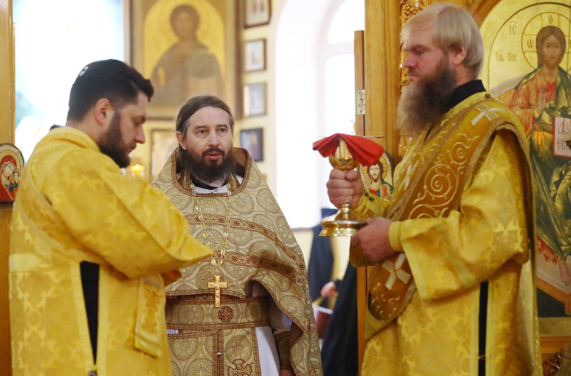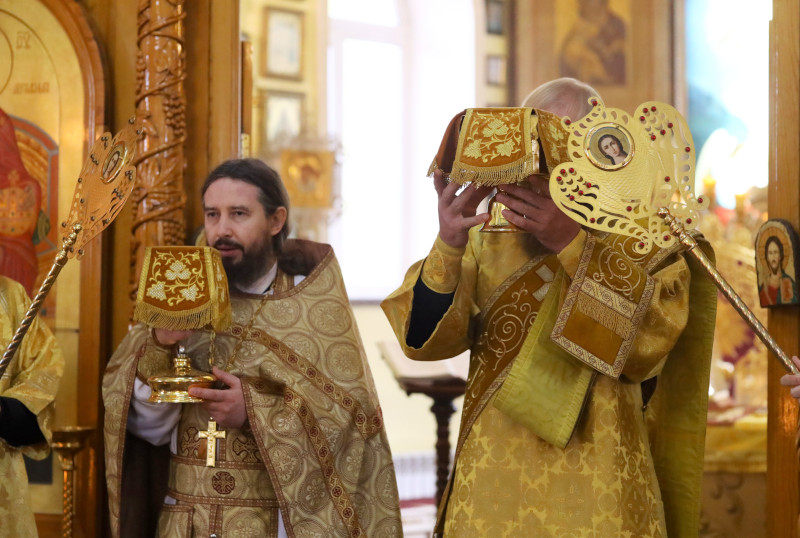 Божественную Литургию в этот день в Кафедральном соборе Вознесения Господня совершил Высокопреосвященный Владимир, архиепископ Петропавловский и Булаевский. Владыке сослужили иером. Серафим (Максимов) — руководитель отдела по тюремному служению и иер. Максим Абдулхасанов — клирик собора. Диаконский чин: Владимир Бартоль и Алексий Александрович. Песнопения Литургии исполнил хор Кафедрального собора под управлением регента Затай А. А.