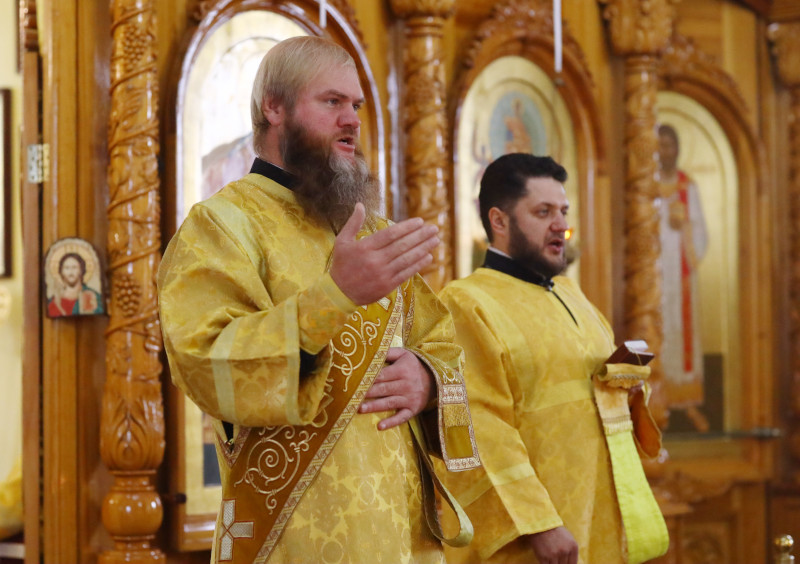По прочтении Евангельского отрывка на сугубой ектении были произнесены прошения о помощи Божией в умирении церковных нестроений. По сугубой ектении были прочитаны молитвы «О ниспослании мира земле Украинской» и «О даровании пастырей Церкви Петропавловской».