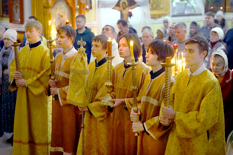 На Литургии было прочитано Евангельское зачало 66 от Луки, повествующее о безумном богаче: И сказал им притчу: у одного богатого человека был хороший урожай в поле; и он рассуждал сам с собою: что мне делать? некуда мне собрать плодов моих? И сказал: вот что сделаю: сломаю житницы мои и построю бо́льшие, и соберу туда весь хлеб мой и всё добро мое, и скажу душе моей: душа! много добра лежит у тебя на многие годы: покойся, ешь, пей, веселись. Но Бог сказал ему: безумный! в сию ночь душу твою возьмут у тебя; кому же достанется то, что ты заготовил? Так бывает с тем, кто собирает сокровища для себя, а не в Бога богатеет. (Лк. 12:16-21)