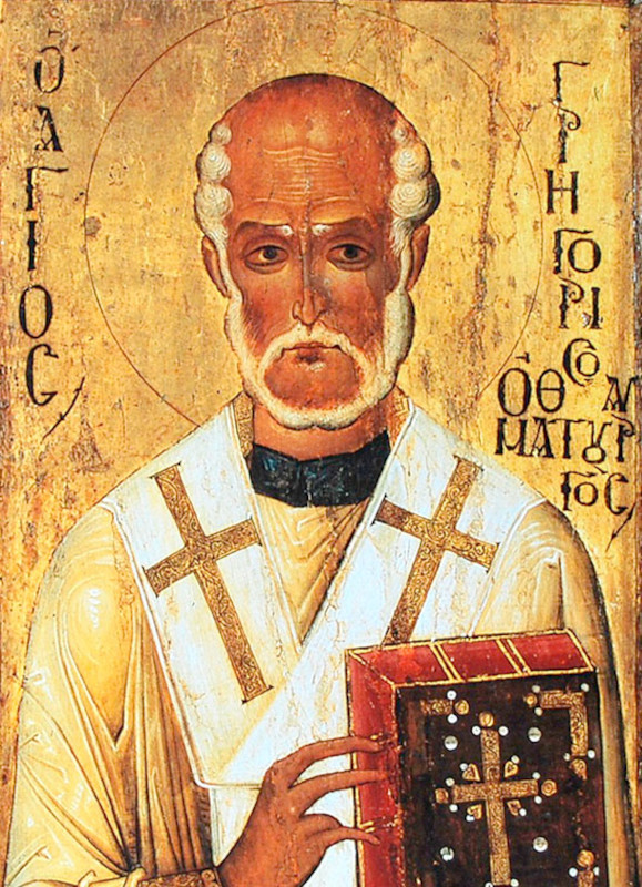 Перед хиротонией святой Григорий усиленно молился, прося Бога и Божию Матерь открыть ему истинный образ поклонения Святой Троице. Во время молитвы ему явилась Пречистая Дева Мария с апостолом Иоанном Богословом, который научил святого, как достойно следует исповедовать тайну Пресвятой Троицы. Святой Григорий записал все, что открыл ему Иоанн Богослов. На этом великом Божественном Откровении было основано учение о святой Троице, впоследствии развитое отцами Церкви — Василием Великим, Григорием Богословом, Григорием Нисским.