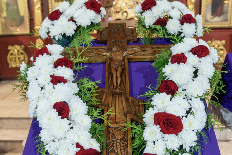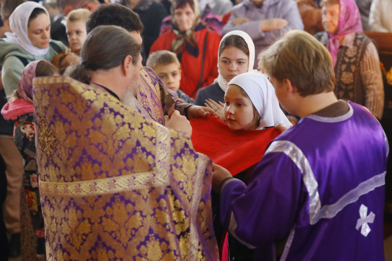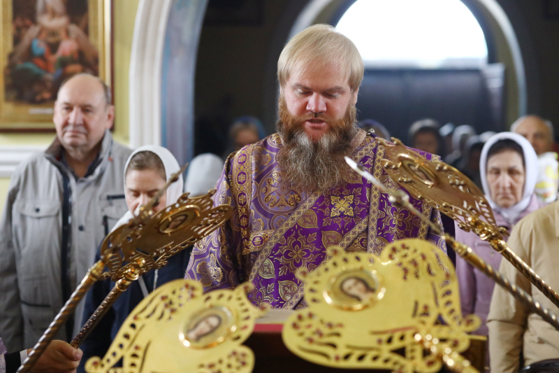 Литургия была совершена по уставу первого дня праздника Воздвижения. Хор пропел праздничные антифоны. На литургии было прочитано Евангельское Зачало 37 от Марка, Недели по Воздвижению: И, подозвав к себе и народ, и учеников, Он сказал им: «Кто хочет следовать за Мною, пусть отречется от самого себя, и возьмет на плечи крест, и так следует за Мною. Ибо кто хочет сберечь жизнь свою, погубит ее; а кто погубит жизнь свою ради Меня, спасет ее. Ибо что пользы человеку, если он стяжает весь мир, а жизни своей лишится? И какой выкуп даст человек за жизнь свою? Ибо кто постыдится Меня и слов Моих перед этим поколением блудным и грешным, того постыдится и Сын Человеческий, когда придет Он во славе Отца Своего со святыми ангелами». И говорил Он им: «Аминь, Я говорю вам, что среди стоящих здесь есть такие, которые не вкусят смерти прежде, чем увидят Царствие Божие, пришедшее в силе». (Мк. 8:34-9:1)