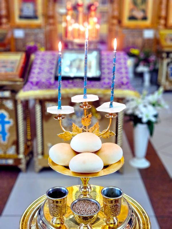На Всенощном Бдении по уставу были освящены хлеб, пшеница, вино и елей с молитвой об их умножении в земле нашей. На полиелее было пропето величание празднику: Велича́ем Тя, Живода́вче Христе́, и чтим Крест Твой святы́й, и́мже нас спа́сл еси́ от рабо́ты вра́жия.
