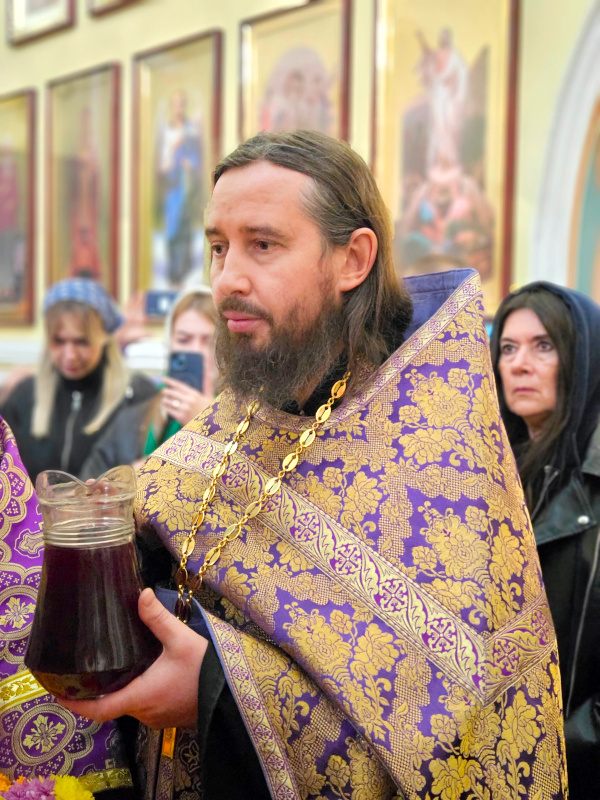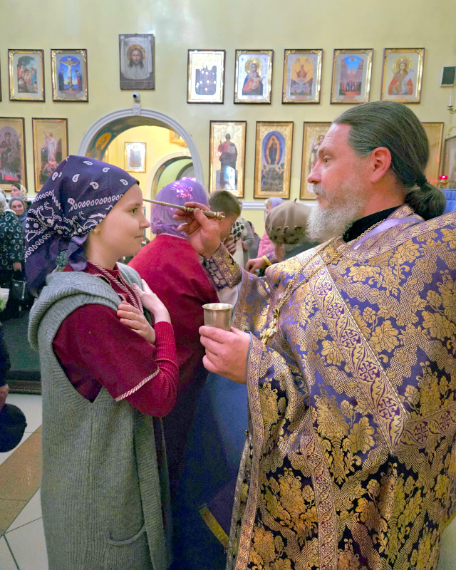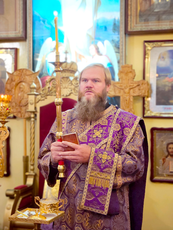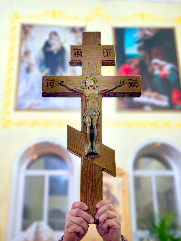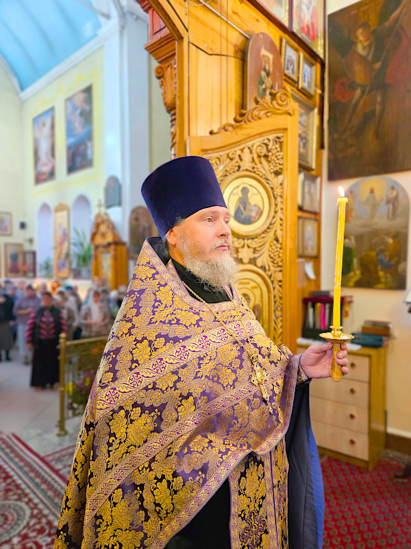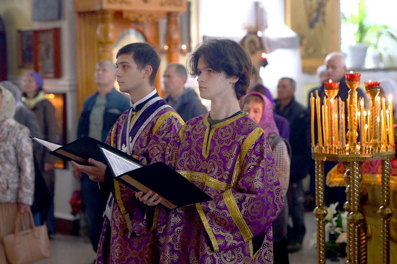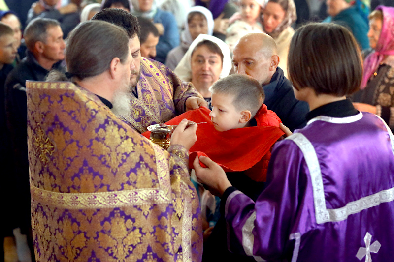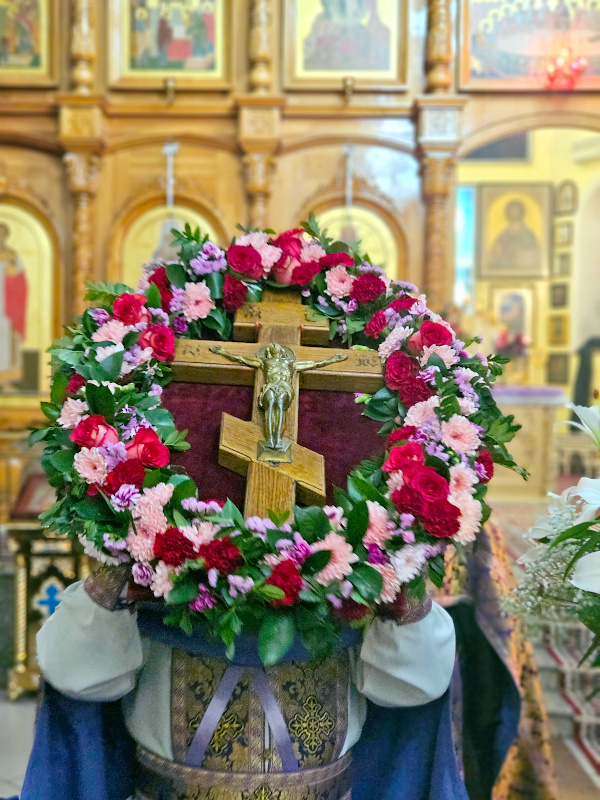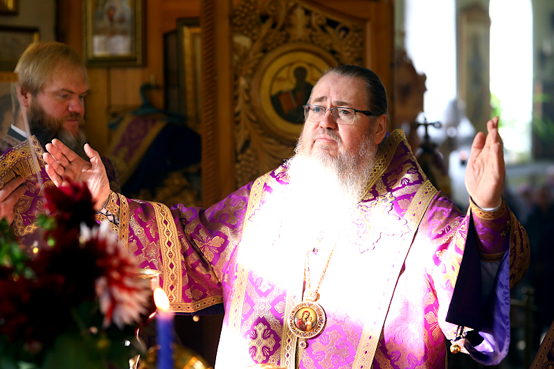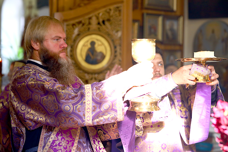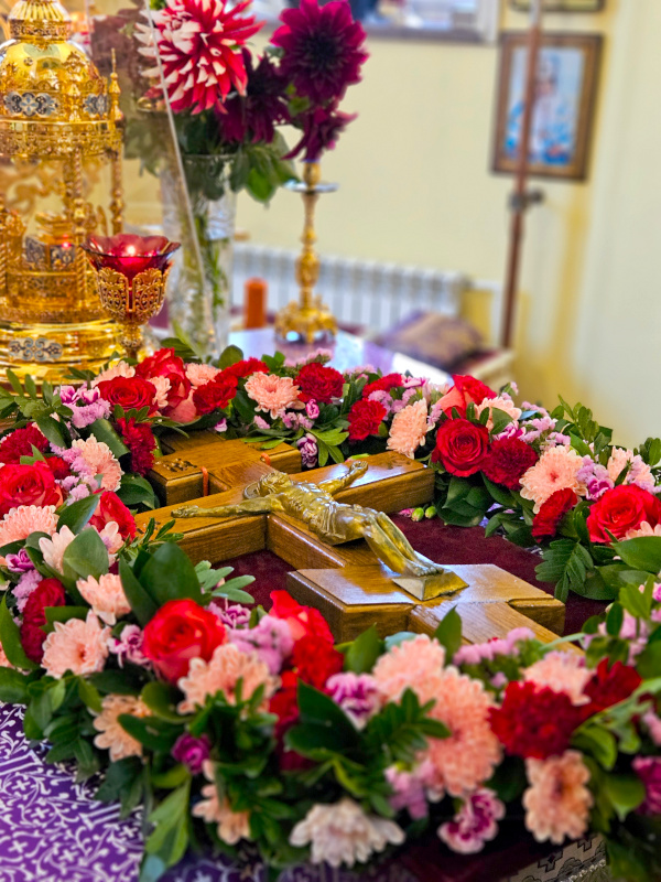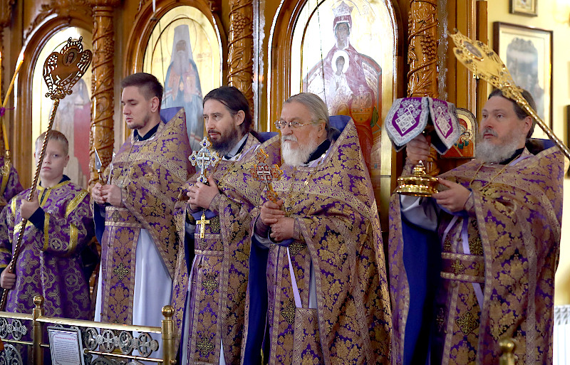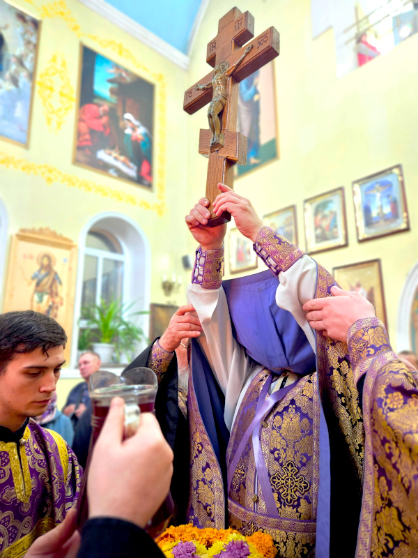 По окончании Литургии было совершено славление празднику Воздвижения, поклонение Кресту.