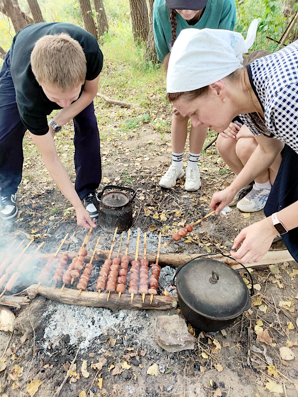 После Богослужения, ученики воскресной школы, ходили в небольшой поход на р. Ишим. Природа нашей Родины необыкновенно красива и разнообразна. Особенно это видно в летний период. По прибытии на место, под руководством взрослых, дети сами разводили костер, готовили себе обед — варили уху, делали бутерброды и многое другое. Конечно, отдых не проходил без детских развивающих игр — волейбола, футбола, бадминтона и другие игры. Богоданная природа удивительным образом делает человека добрее, мотивирует его к положительной активности, дает человеку осознать себя частью этой прекрасной живой природы.