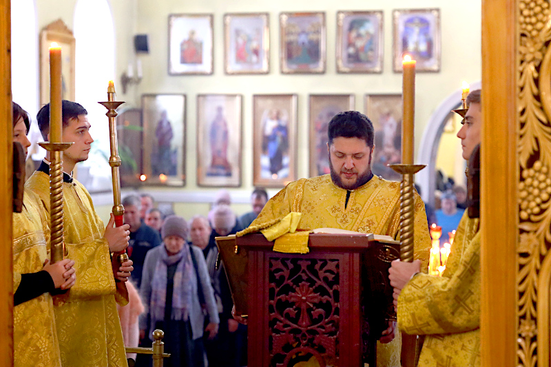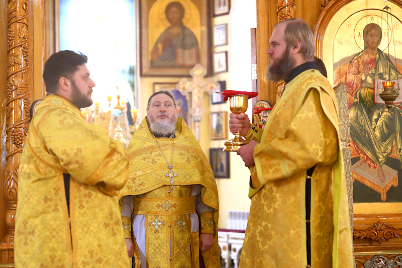 В этот день Божественную Литургию в Вознесенском кафедральном соборе совершил прот. Сергий Первушин — секретарь епархиального управления. Ему сослужили клирики собора — иером. Серафим (Максимов) и иер. Максим Абдулхасанов, диаконский чин — Владимир Бартоль и Алексей Александрович. Песнопения Литургии исполнил хор Вознесенского собора под управлением Затай А. А.