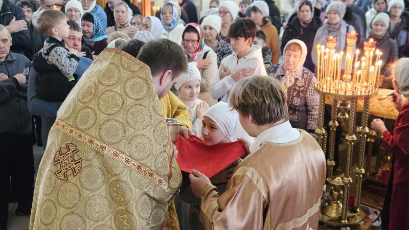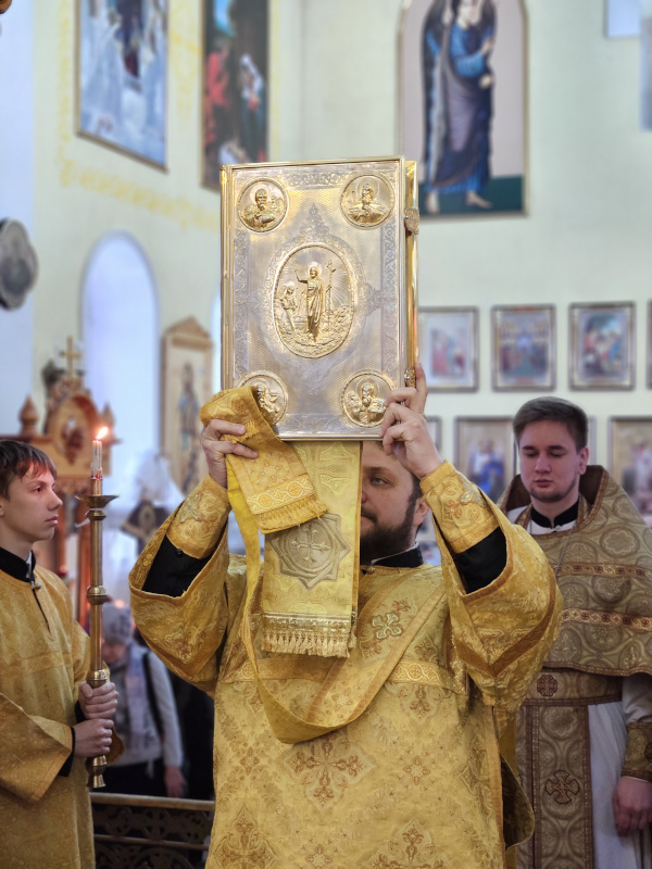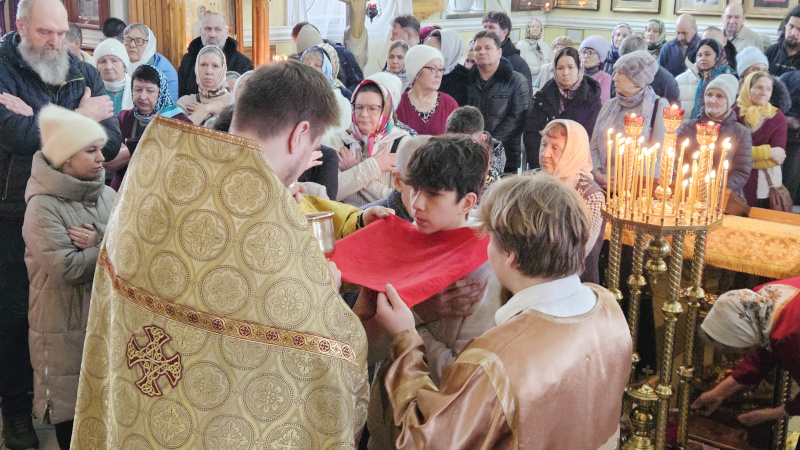 На Литургии было прочитано Евангельское Зачало 89 от Луки: два человека вошли в храм помолиться: один фарисей, а другой мытарь. Фарисей, став, молился сам в себе так: Боже! благодарю Тебя, что я не таков, как прочие люди, грабители, обидчики, прелюбодеи, или как этот мытарь: пощусь два раза в неделю, даю десятую часть из всего, что́ приобретаю. Мытарь же, стоя вдали, не смел даже поднять глаз на небо; но, ударяя себя в грудь, говорил: Боже! будь милостив ко мне грешнику! Сказываю вам, что сей пошел оправданным в дом свой более, нежели тот: ибо всякий, возвышающий сам себя, унижен будет, а унижающий себя возвысится. (Лк.18:10-14).
