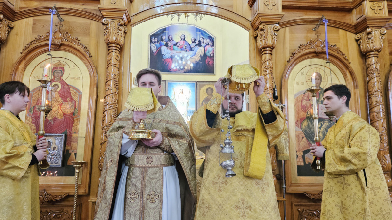 Божественную Литургию в этот день в кафедральном соборе Вознесения Господня в сослужении диакона Алексия Александровича совершил иер. Максим Абдулхасанов. Песнопения Литургии исполнил хор собора под управлением регента Затай А. А.