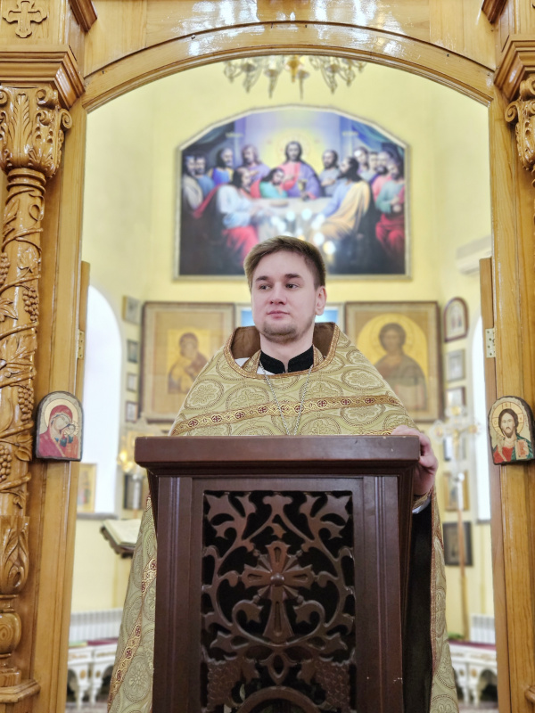 После окончания Литургии иерей Максим обратился к молящимся со словами проповеди.