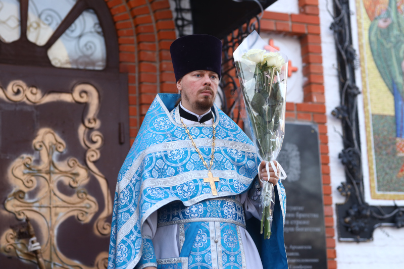 На Литургии было прочитано Евангельское Зачало 54 от Луки: Бысть же ходящим им, и самъ вниде в весь некую: жена же некая именемъ марфа прият его в дом свой. И сестра ей бе нарицаемая мариа, яже и седши при ногу иисусову, слышаше слово его. Марфа же молвяше о мнозе службе, ставши же рече: Господи, не брежеши ли, яко сестра моя едину мя остави служити? рцы убо ей, да ми поможет. Отвещав же Иисус рече ей: Марфо, Марфо, печешися, и молвиши о мнозе, едино же есть на потребу: Мариа же благую часть избра, яже не отимется от нея.