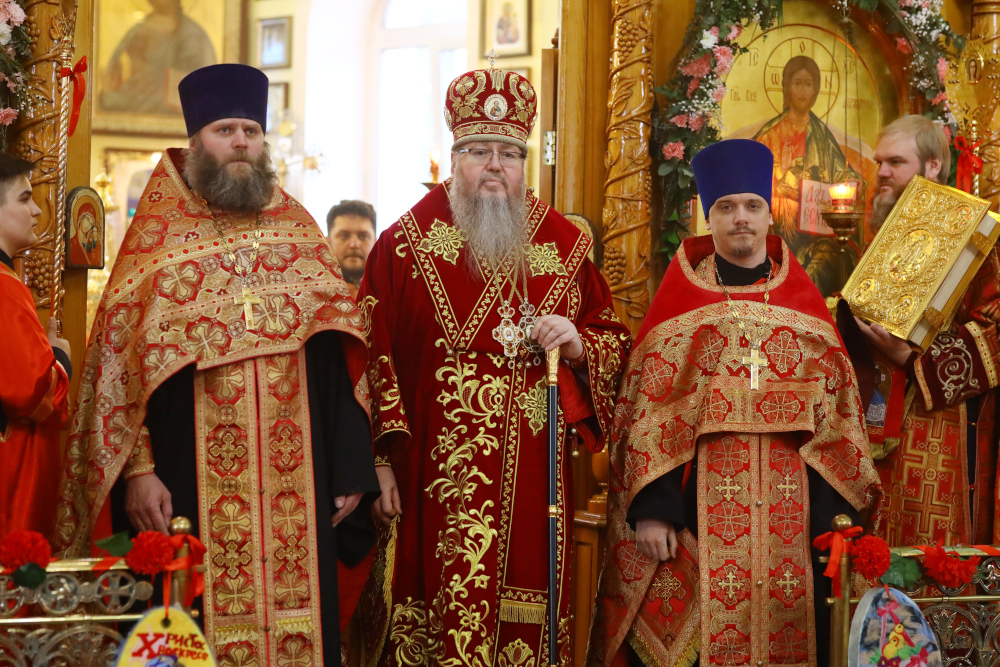 По окончании чтения Евангелия прот. Сергий Первушин — секретарь епархиального управления огласил Пасхальное Послание преосвященного Владимира, епископа Петропавловского и Булаевского к православным жителям Северного Казахстана.