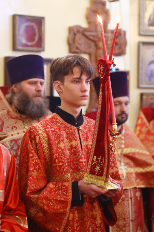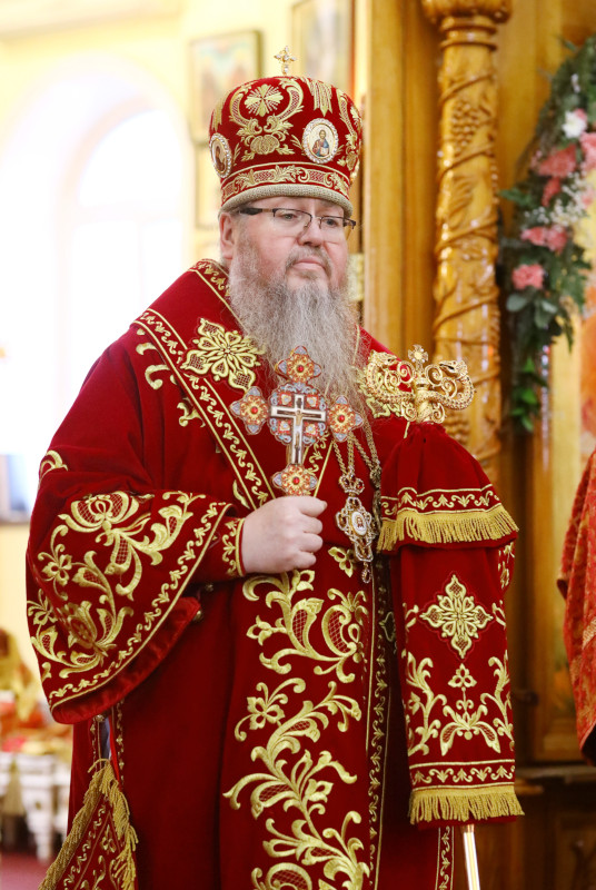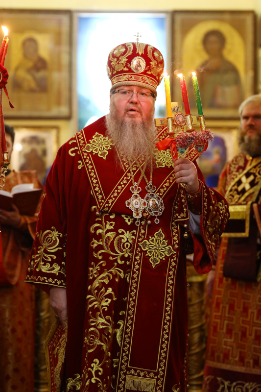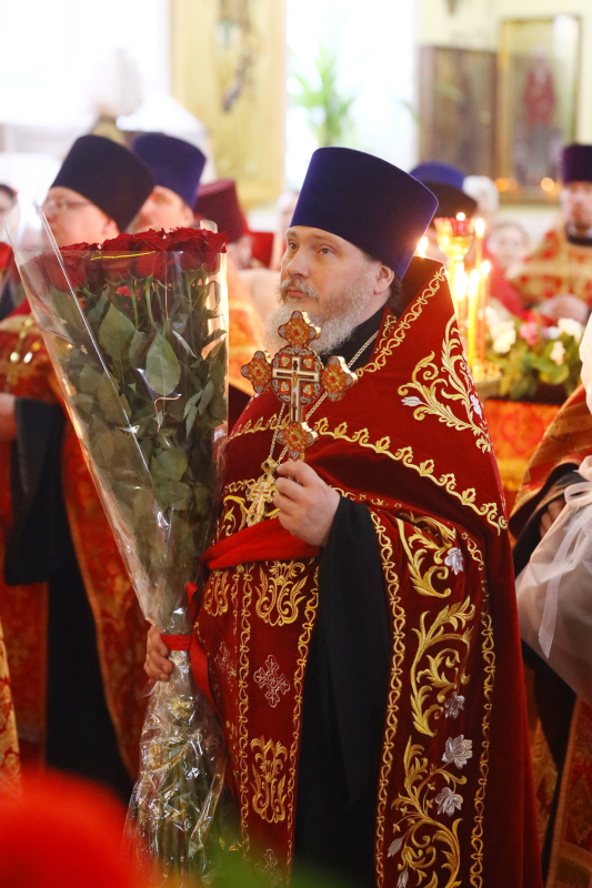 На входе, после пения «Свете Тихий», Высокопреосвященный архиепископ Владимир вручил иерархические награды клирикам епархии. По благословению Святейшего Патриарха Московского и всея Руси Кирилла, в связи с праздником Светлой Пасхи, за труды во благо Православной Церкви Казахстана клирики епархии иер. Алексей Щербенко — клирик храм сщмч. Мефодия Петропавловского и иер. Константин Бартоль — настоятель Покровского храма г. Тайынша были награждены правом ношения палицы.