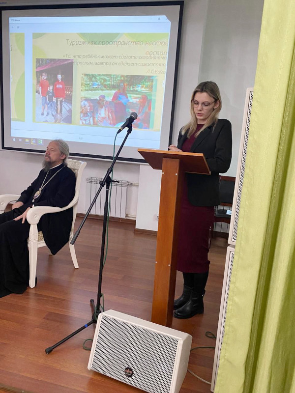 Они выступили с докладами и представили результаты своей практической деятельности: Ночевная Н. Ф. — «Работа воскресного досугового центра»; Цветкова С. В. — «Олимпиада „Наша Наследие“ как способ формирования общечеловеческих ценностей»; Фадеева А. В. руководитель скаутского отряда — «Туризм как одно из направлений патриотического воспитания».