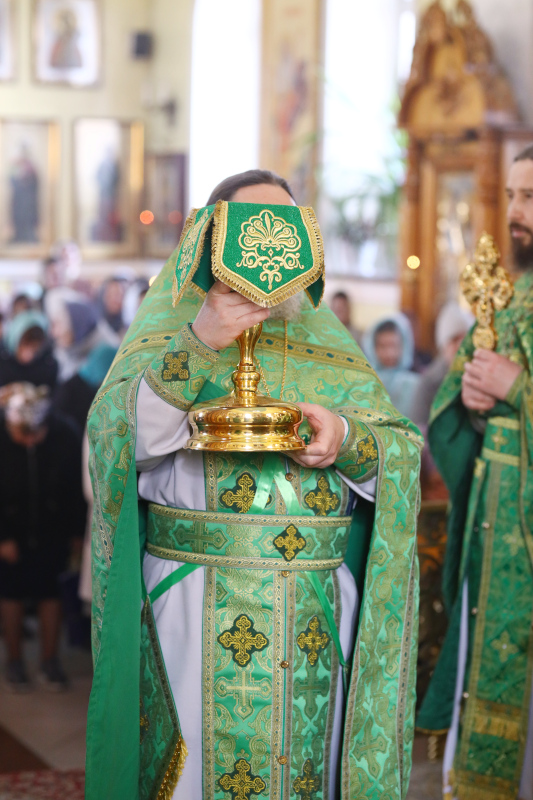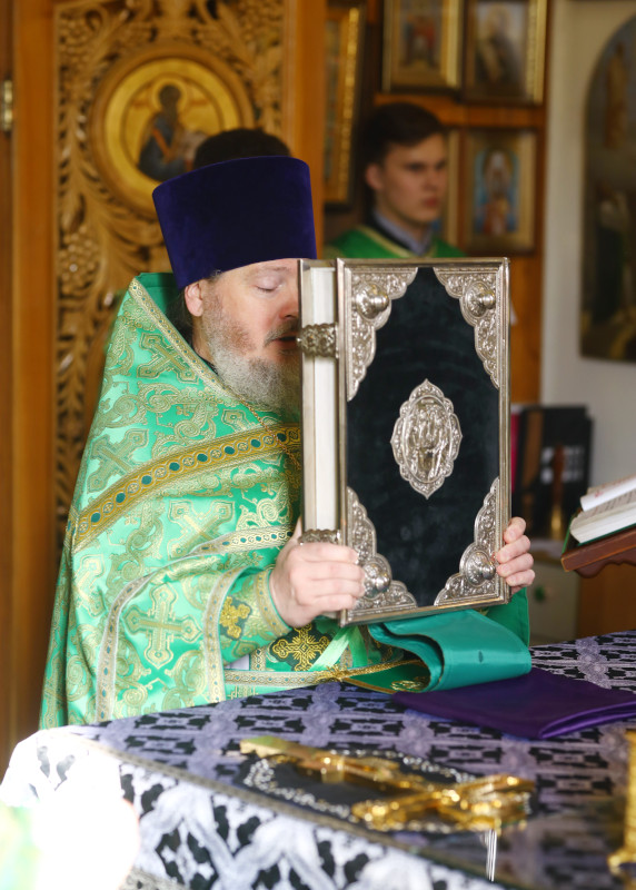 На Литургии было прочитано Воскресное Евангелие от Марка 47 зачало: Когда были они на пути, восходя в Иерусалим, Иисус шел впереди их, а они ужасались и, следуя за Ним, были в страхе. Подозвав двенадцать, Он опять начал им говорить о том, что́ будет с Ним: вот, мы восходим в Иерусалим, и Сын Человеческий предан будет первосвященникам и книжникам, и осудят Его на смерть, и предадут Его язычникам, и поругаются над Ним, и будут бить Его, и оплюют Его, и убьют Его; и в третий день воскреснет. Тогда подошли к Нему сыновья Зеведеевы Иаков и Иоанн и сказали: Учитель! мы желаем, чтобы Ты сделал нам, о чем попросим. Он сказал им: что хотите, чтобы Я сделал вам? Они сказали Ему: дай нам сесть у Тебя, одному по правую сторону, а другому по левую в славе Твоей. Но Иисус сказал им: не знаете, чего просите. Можете ли пить чашу, которую Я пью, и креститься крещением, которым Я крещусь? Они отвечали: можем. Иисус же сказал им: чашу, которую Я пью, будете пить, и крещением, которым Я крещусь, будете креститься; а дать сесть у Меня по правую сторону и по левую — не от Меня зависит, но кому уготовано. И, услышав, десять начали негодовать на Иакова и Иоанна. Иисус же, подозвав их, сказал им: вы знаете, что почитающиеся князьями народов господствуют над ними, и вельможи их властвуют ими. Но между вами да не будет так: а кто хочет быть бо́льшим между вами, да будем вам слугою; и кто хочет быть первым между вами, да будет всем рабом. Ибо и Сын Человеческий не для того пришел, чтобы Ему служили, но чтобы послужить и отдать душу Свою для искупления многих. (Мк. 10:32-45)