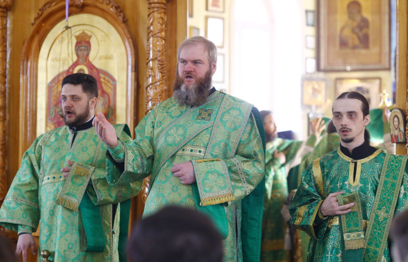 Божественную Литургию по чину Святителя Василия Великого в кафедральном соборе Вознесения Господня совершил Высокопреосвященный Владимир, архиепископ Петропавловский и Булаевский. Владыке сослужили прот. Сергий Первушин — секретарь епархиального управления, прот. Федор Бердик, иером. Серафим (Максимов), иер. Максим Абдулхасанов. Диаконский чин: Владимир Бартоль, Алексей Александрович и иеродиакон Михаил. Песнопения Литургии исполнил хор собора под управлением регента Затай А. А.