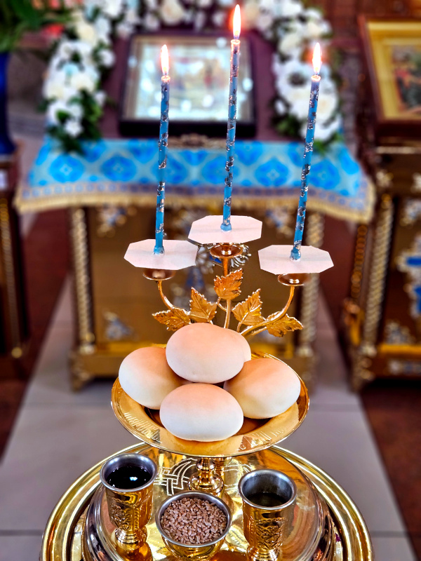 На Всенощном Бдении духовенство совершило чин Литии с освящением хлебов, пшеницы, вина и елея, с молитвой об умножении их в стране и граде нашем. Было пропето Величание праздника Рождества Богородицы: «Величаем Тебя, Пречистая Дева, и почитаем святых Твоих родителей, и всеславное славим рождество Твое». Все молящиеся в храме были помазаны освященным елеем.