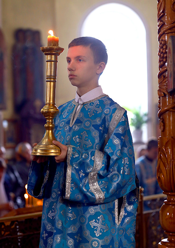 На Литургии были пропеты антифоны праздника Рождества Богородицы. Третий Антифон был прочитан Выпускником Московской магистратуры при Троице-Сергиевой Лавре Павлом Березиным и архиерейским иподиаконом Назарием Командриковым. Стих 1 (Псалом 131):