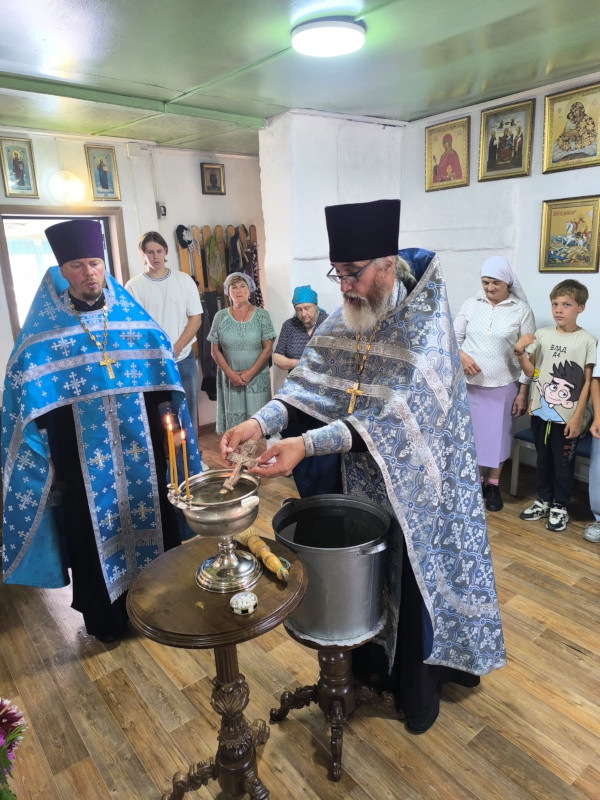 Перед началом богослужения в водосвятной часовне был совершён чин малого освящения воды.