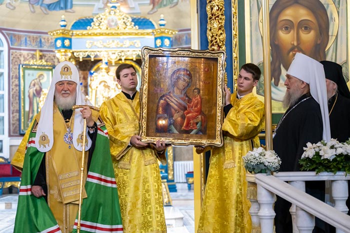 В дар Успенскому собору Предстоятель передал Тихвинский образ Пресвятой Богородицы.