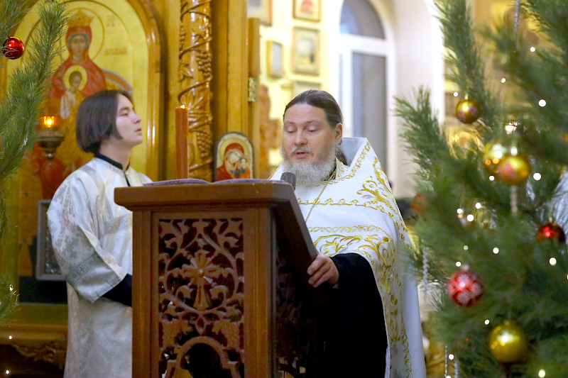 После чтения Святого Евангелия секретарь епархиального управления протоиерей Сергий Первушин огласил Рождественское послание архиепископа Петропавловского и Булаевского Владимира священникам, диаконам, монашествующим и мирянам Северного Казахстана.